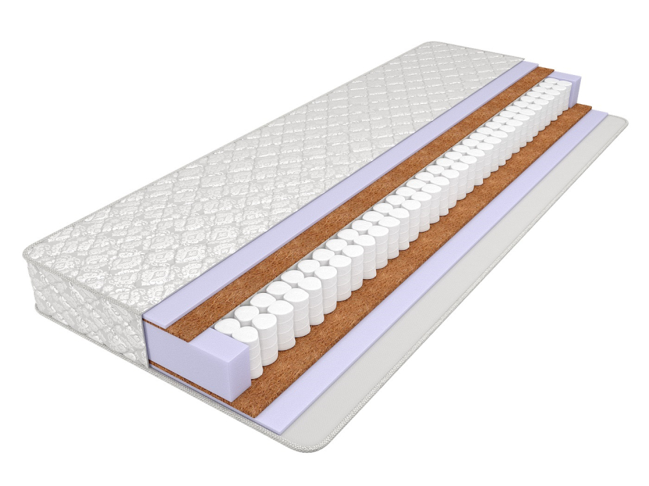 Ортопедический матрас Астра Люкс Плюс базируется на блоке независимых пружин, распределяющем нагрузку на каждую пружину в отдельности. С двух сторон матраса лежат плиты из кокосовой койры, позволившие добиться высокой жесткости матраса.