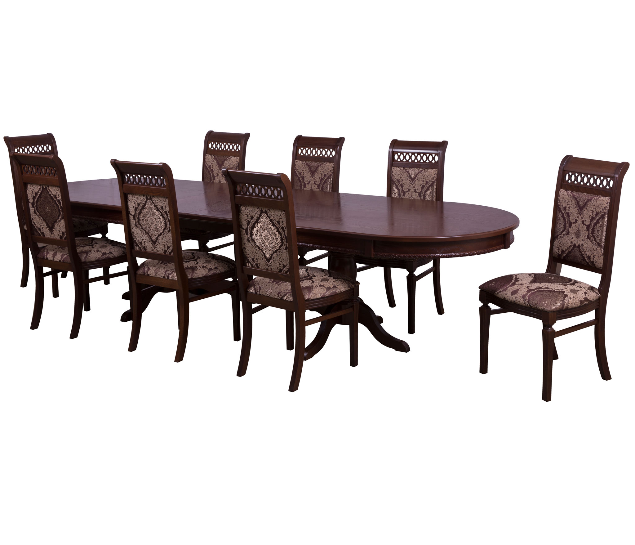 Большой обеденный стол Верона. Основание изготовлено из массива бука, столешница - плита МДФ (25мм), облицованая шпоном. Две цельные вставки позволяют увеличить длину столешницы на 42 или 84 см. В разложенном виде стол позволит с комфортом разместить 14 человек. Идеальным дополнением к столу Верона будут стулья Флоренция и Флоренция 2. Габаритные размеры (см): Длина: 250/292/334; Ширина: 107; Высота: 76