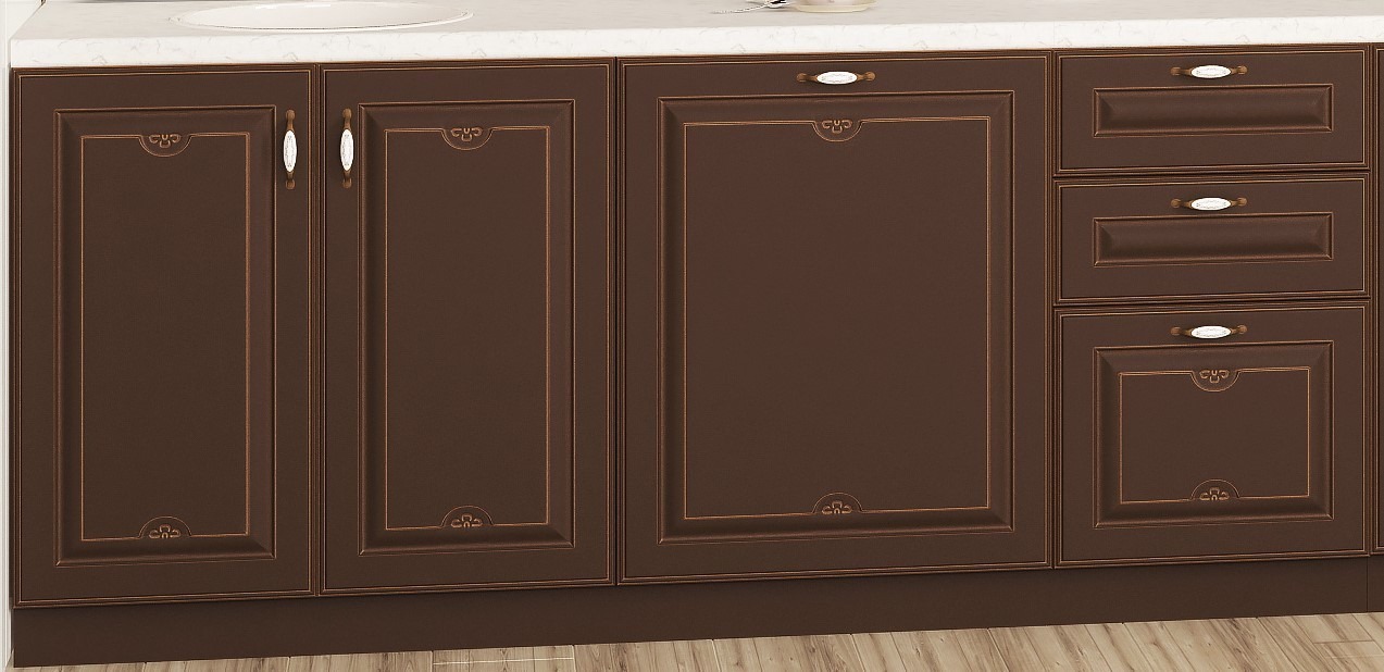 Материал фасадов - МДФ Egger 16 мм, итальянская эмаль / золотая патина / акриловый нежелтеющий лак - IVE (Италия)