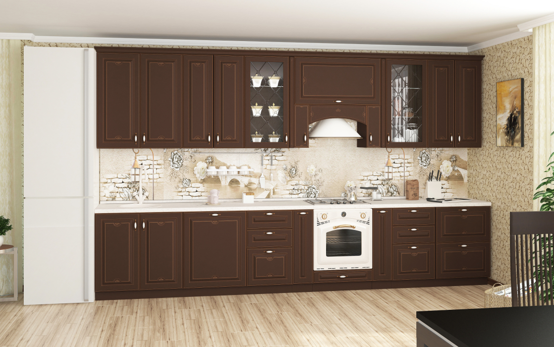 Цена включает: шкафы, петли, направляющие, карниз, цоколь.