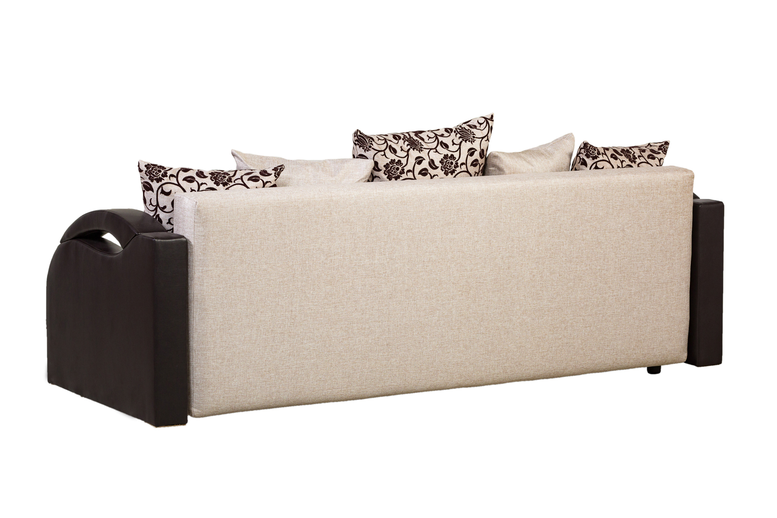 Стильный диван-еврокнижка Юпитер БД с практичными подлокотниками интересной формы из искуственной кожи. Благодаря простому и надежному механизму «Еврокнижка» диван легко превращается в удобное спальное место для двух человек размером 1930 х 1400 мм. Диван имеет ящик для вещей, удобную ручку для раскладывания. Пять подушек входят в стоимость дивана. Сидение мягкое, благодаря наполнителю ППУ, конструкция прочная и надежная, отлично зарекомендовавшая себя.