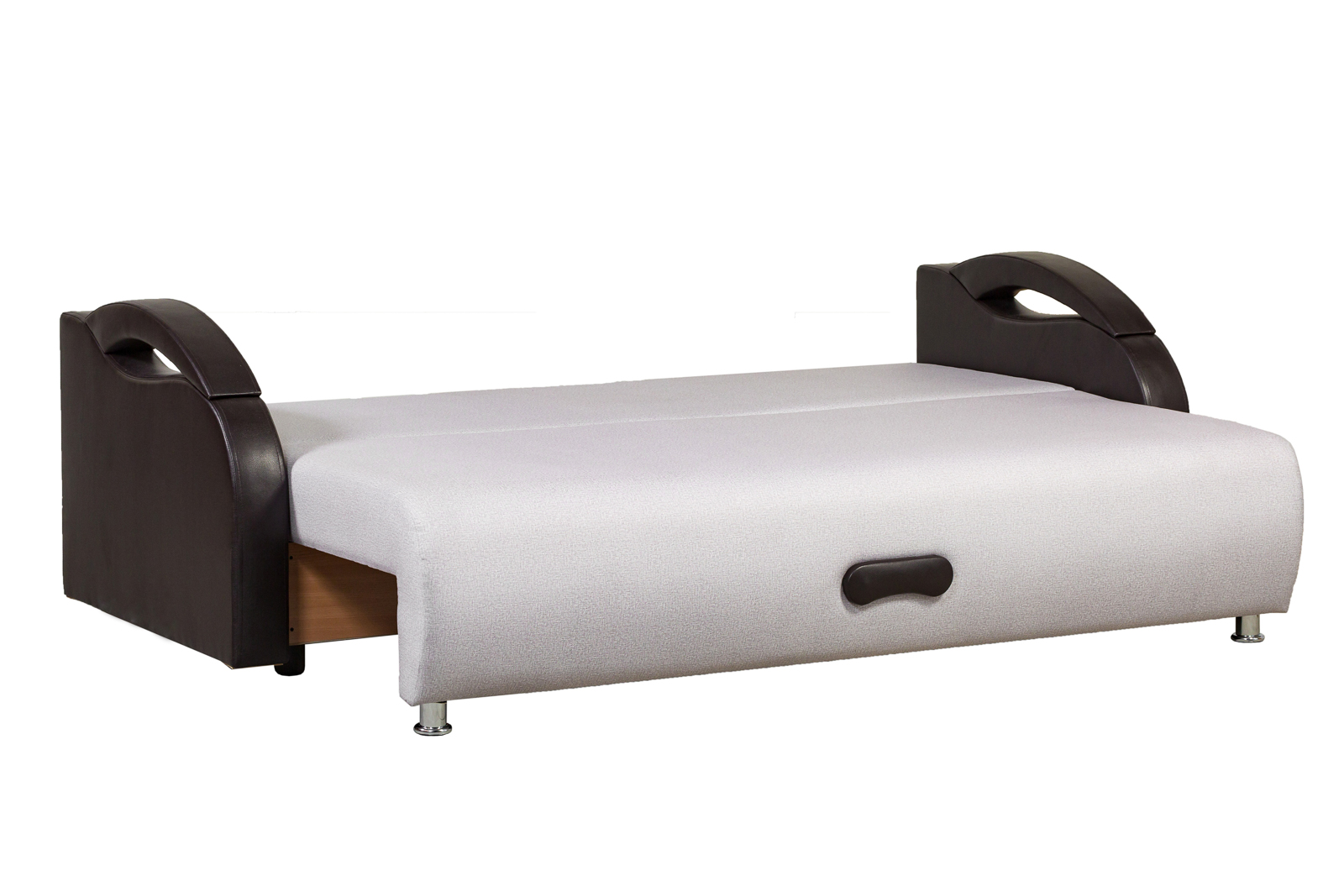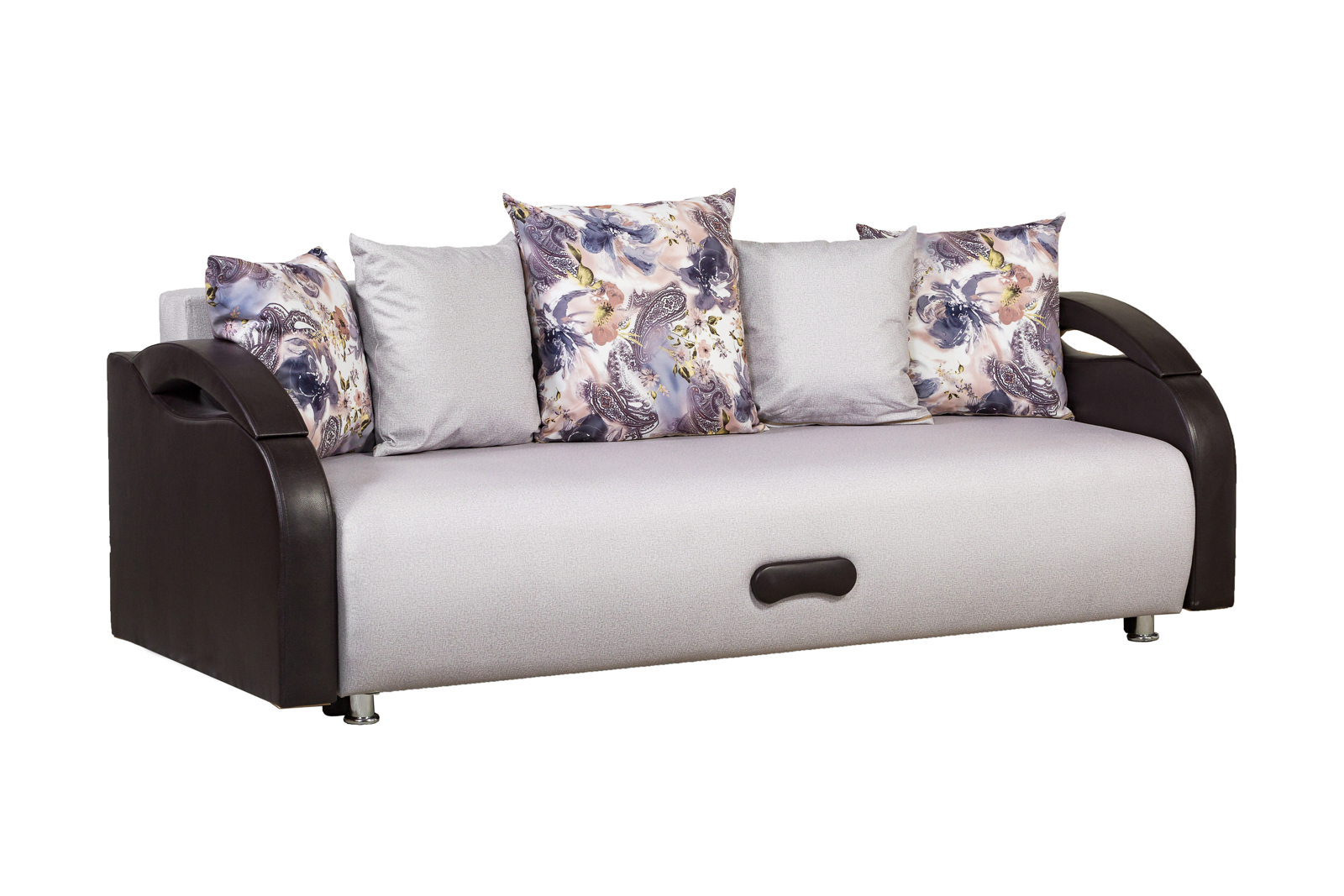 Тип тканей – шенилл, жаккард, замша. Отлично подойдет даже для самой небольшой комнаты, в том числе как постоянное спальное место. Наполнение – пенополиуретан, материал каркаса – дерево хвойных пород, ЛДСП, ДВП. Для удобства транспортировки и заноса в квартиру диван разбирается на части, которые упаковываются в полиэтиленовую пленку.