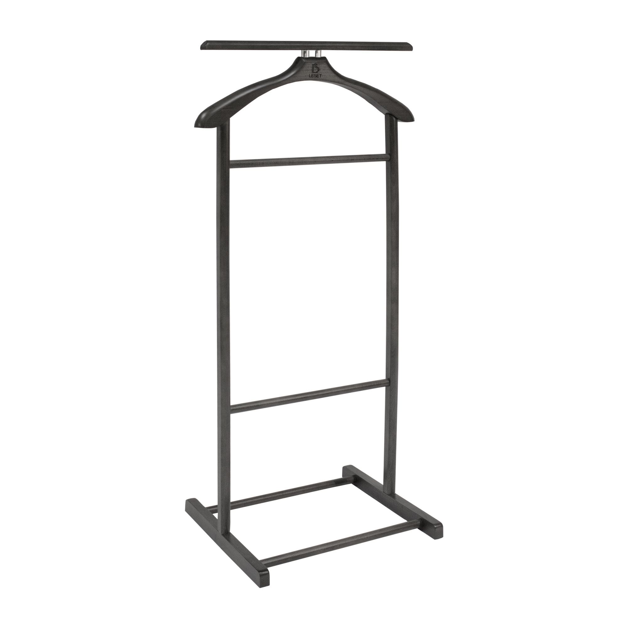 Строгая и элегантная вешалка из массива натурального бука на двух деревянных опорах. В ней не много деталей, но все они разработаны для удобного хранения вещей. Горизонтальные планки предназначены для юбок и брюк, на плечики можно повесить пиджак, рубашку, верхнюю одежду.