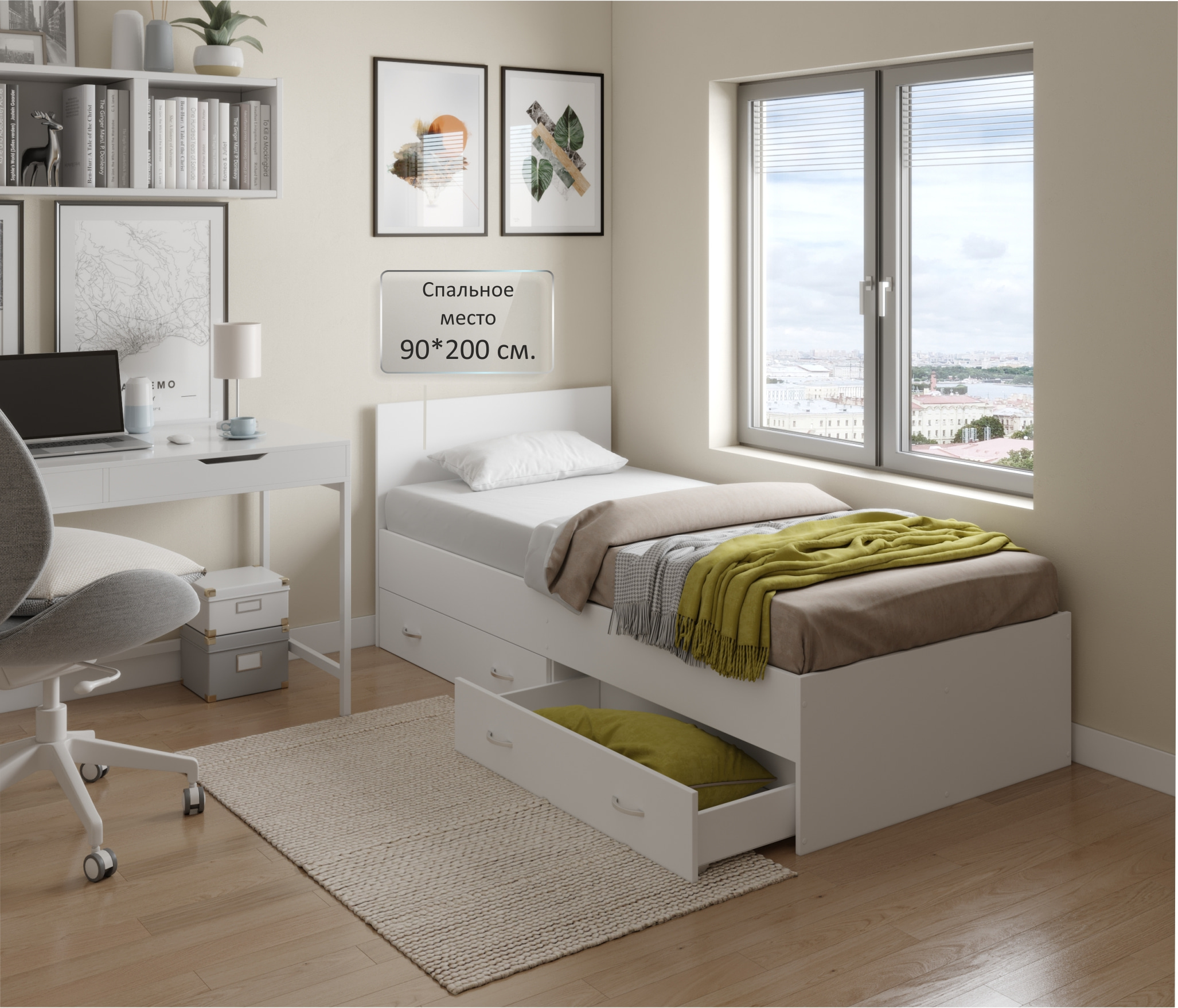 Односпальная недорогая белая кровать «Виктория» 900 мм. с 2-мя выдвижными ящиками — идеальный выбор тех, кто ищет доступную, надежную, базовую кровать. Выпускается в разных размерах – от односпальной до широкой двуспальной кровати. Белый цвет кровати – прекрасный базовый вариант мебели, который позволяет создать любой цветовой интерьер. В то же время, белая кровать зрительно увеличивает пространство, добавляя ему воздушности и чистоты.