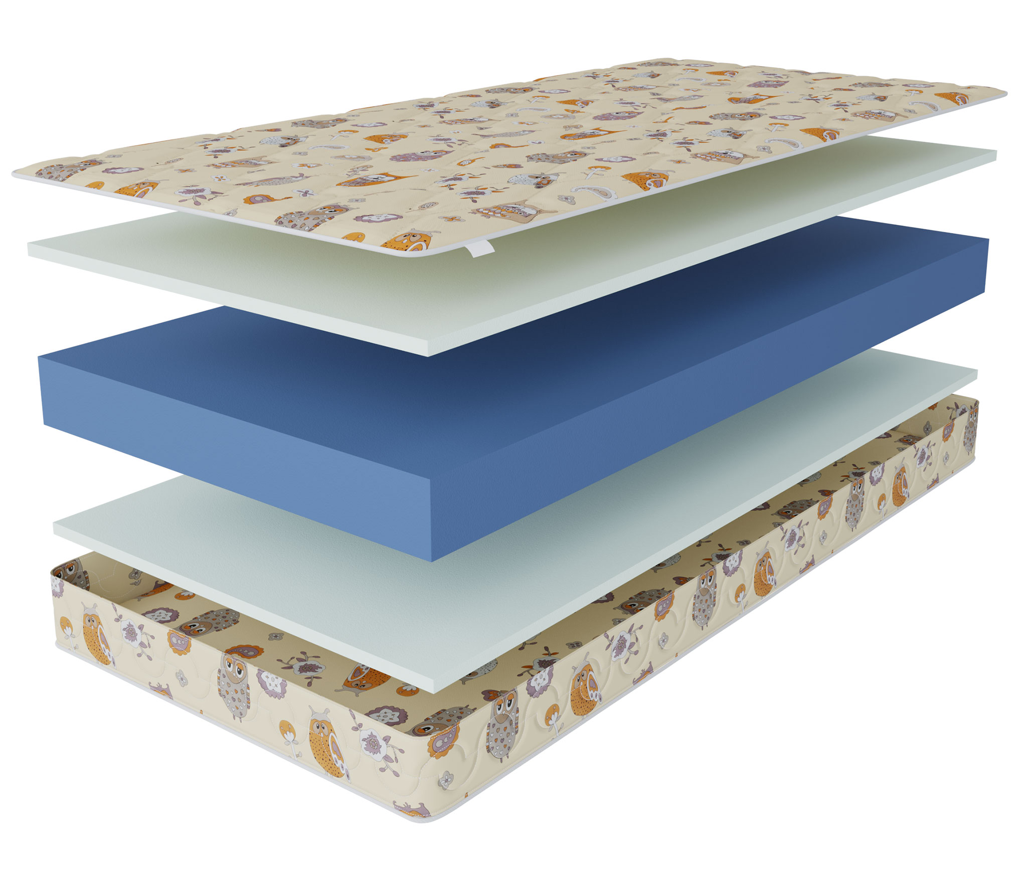 Легкий, прочный, жесткий матрас, который сделан без применения клеящих составов и подойдет даже для самых маленьких и дорогих сонь. Чехол матраса сделан из 100% хлопка.
