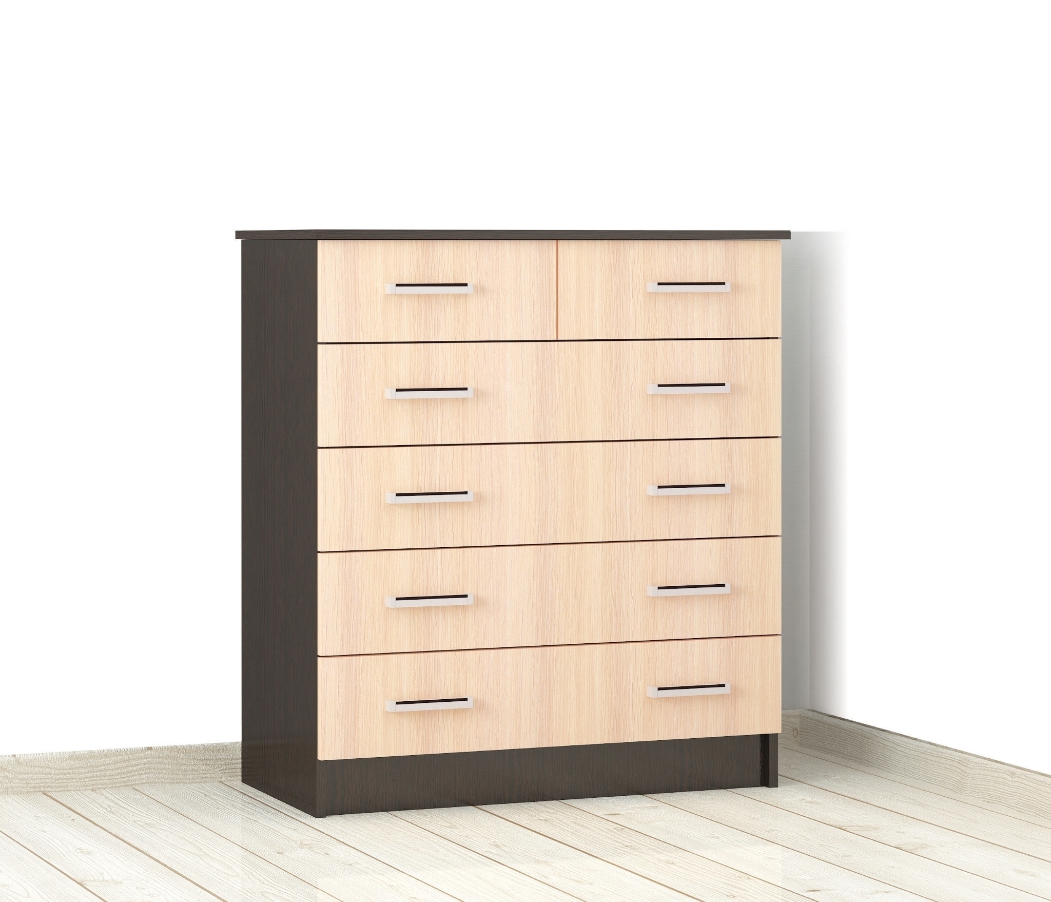 Комод полностью соответствует описанию. Качество соответствует цене, нельзя за эти деньги ожидать что то шикарное. Но свою функцию- хранение одежды выполняет полностью. Ящики вместительные.