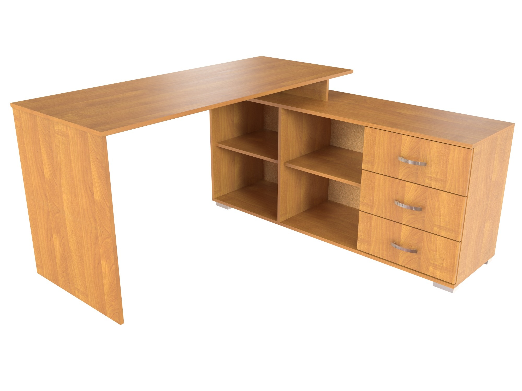 Компьютерный стол СК-16 выполнен из качественной ЛДСП в лаконичном деловом стиле: строгие геометрические линии, , минимум фурнитуры. Направляющие шариковые.Благодаря продуманной конструкции, все необходимое для работы всегда будет под рукой: просторная прямоугольная столешница Размером ДЛ 145 см,Шир 40 см и расположенный к ней под прямым углом модуль с полками и тремя выдвижными ящиками Размером ДЛ 140 см,шир 40 см гармонично сочетаются в рабочем пространстве.Высота стола 75 см.2 ниши с полками могут использоваться под процессор ,так как полки съёмные(45 см шир и высота 57 см каждой нишиниши),Выдвижные ящики шир 47 см,глуб 38 см.