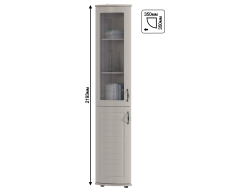 Несмотря на компактные размеры – ширина 31 см, высота 219 см и глубина 35 см, шкаф Сити СБ-2928 довольно вместителен. Визуально его можно разделить на два отделения. Верхнее с тремя вместительными полками и нижнее с двумя. Дверца верхнего отделения с остеклением.Корпус шкафа выполнен из современного и прочного материала ЛДСП, фасады - из МДФ. Оформление отделки комбинированное. Корпус выполнен в цвете «Бежевый песок», а фасадные поверхности в оттенке «Кофе». Материал отделки устойчив к влаге, что актуально для светлых тонов.