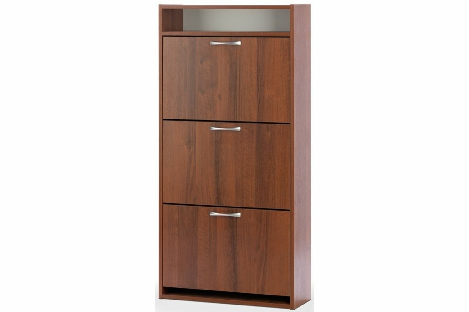 Шкаф оборудован тремя откидными секциями, рассчитанными на 18 пар обуви.