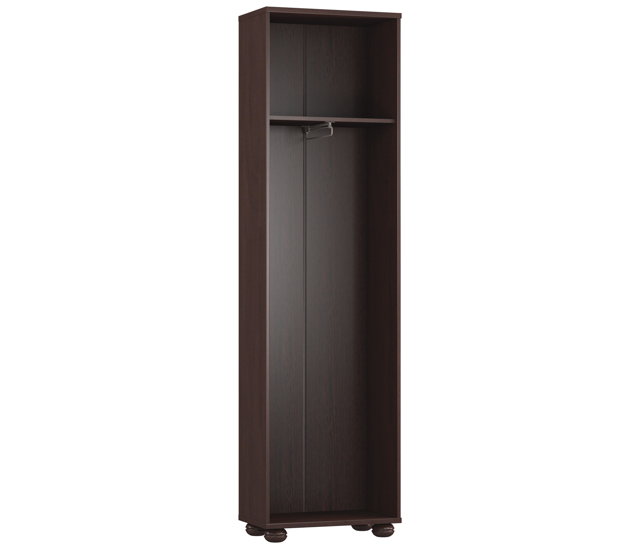Вместительный однодверный шкаф для одежды. Он впишется в пространство прихожей или спальни. Шкаф занимает минимум места, но отличается вместительностью. В нем удобно хранить одежду и аксессуары. Цвет шкафа — насыщенный оттенок «мара махагон».