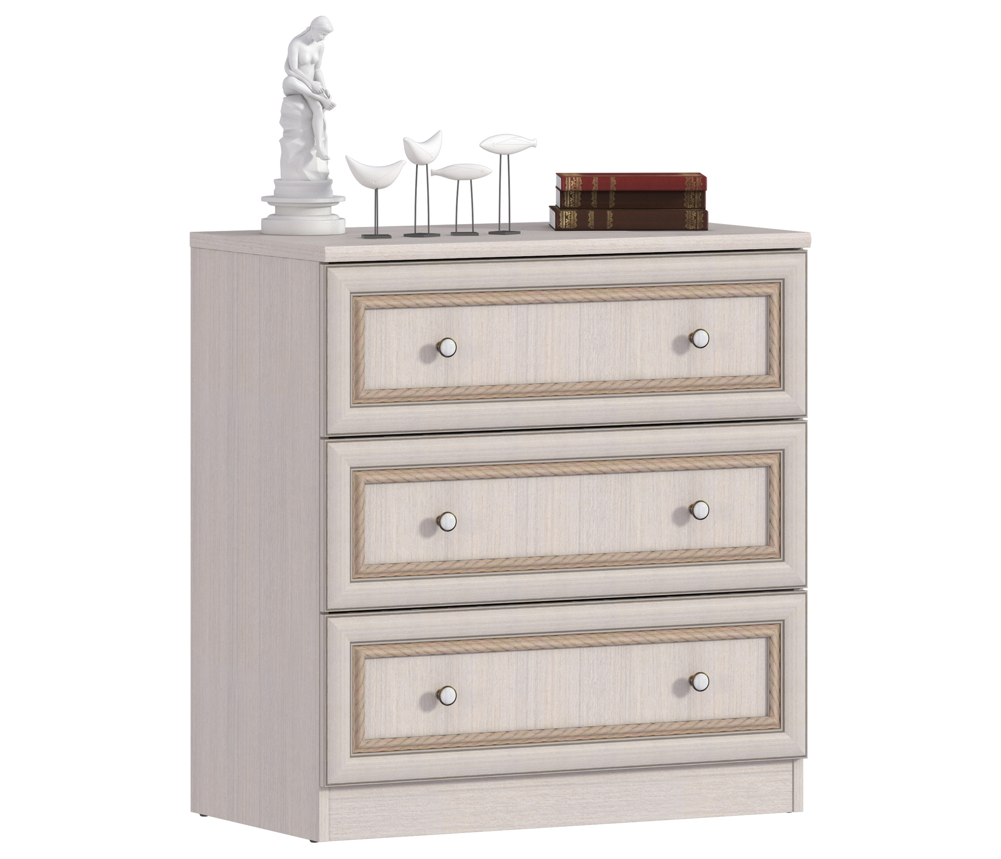 Комод «Грация» - идеальное сочетание строгости линий, классического стиля и функциональности. Представленная модель прекрасно впишется в Вашу спальню или гостиную, не заняв при этом много места. Размер Ш 80 см X В 85 см X Г 44 см. Цвет Дуб Молочный. Материал ЛДСП. Количество ящиков – 3 штуки.