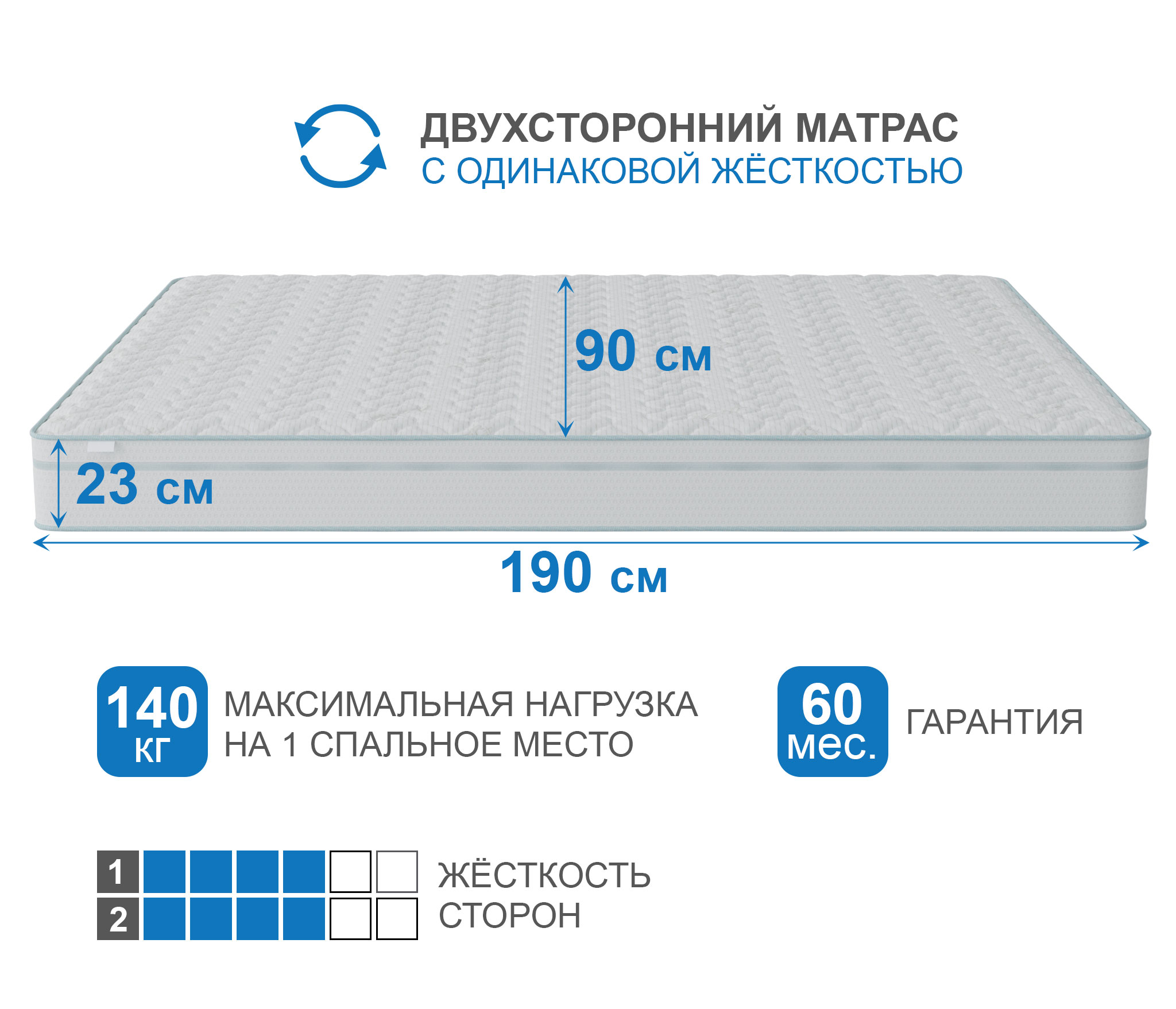 Матрас подойдет для пар с разницей в весе не более 30 кг. Чехол стегается на 15 мм пене, ткань чехла - приятный мягкий трикотаж. Для продления срока службы рекомендуется использовать матрас с защитным чехлом AquaStop. Матрас отвечает за правильное положение нижнего и среднего отделов позвоночника, а за шейный отдел отвечает, правильно подобранная, ортопедическая подушка.