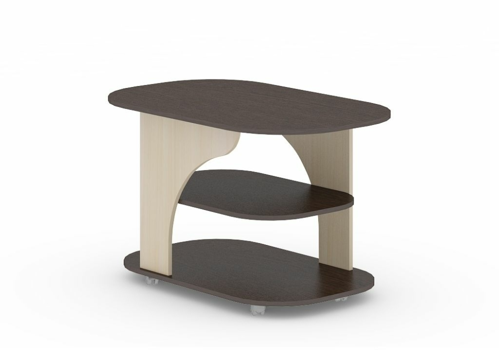 Модель выполнена из ЛДСП. В изделии используются качественные материалы и фурнитура. Столик оснащен колесиками, имеет два подстолья и закругленную овальную столешницу. Стильный, компактный, красивый столик "Мила" будет хорошим помошником в любой комнате дома.