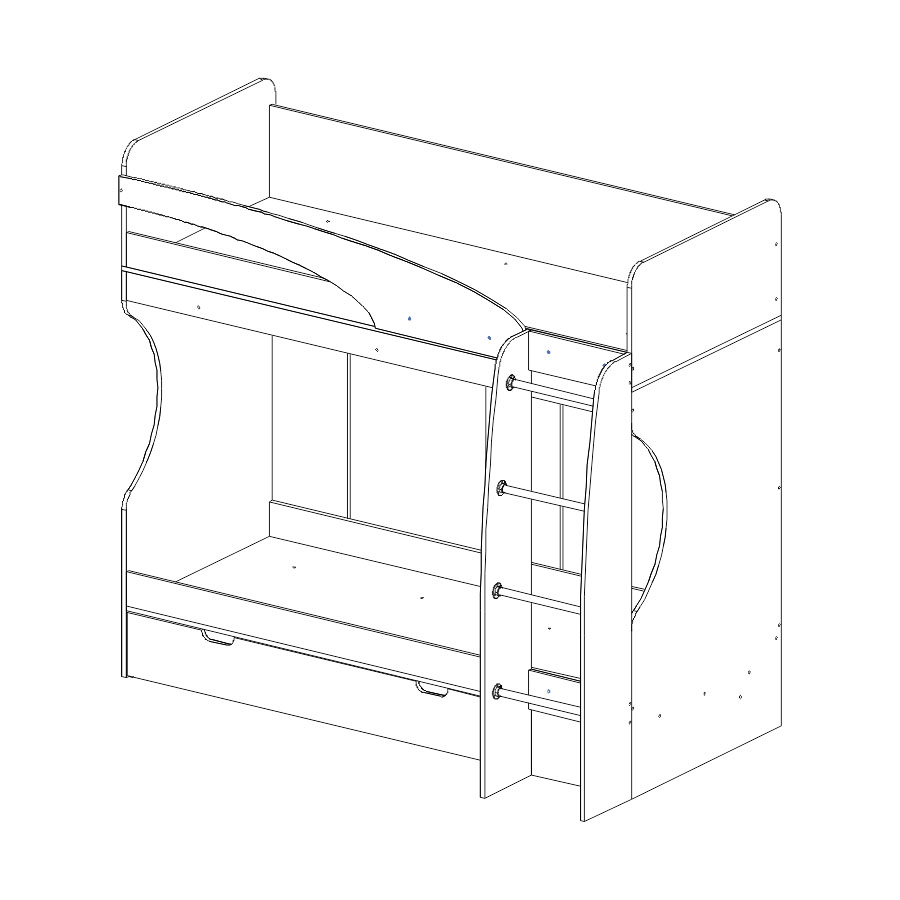 Отличный вариант, в семье 4 детей. Две кровати закрыли всю необходимость в спальных местах, сэкономив достаточно места в комнате. Мягкие цвета кровати с легкостью вписались в интерьер. Снизу предусмотрены удобные ящики для вещей. Для безопасности предусмотрен удобный бортик. Размер спального места стандартный, поэтому при покупке матраса проблем не возникло.