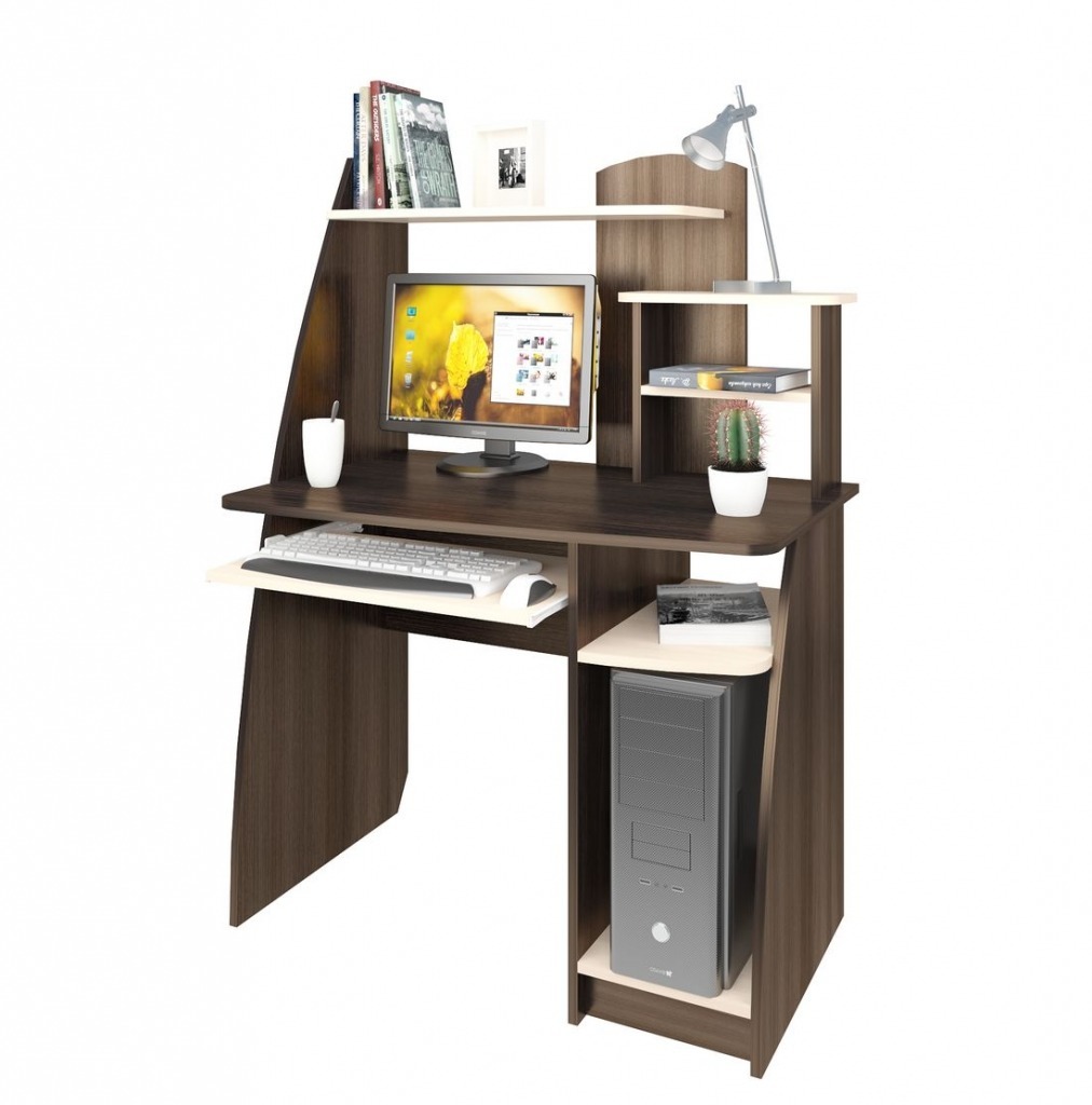 Такой компактный компьютерный стол цвета «венге» приобрела для дочери-студентки. У него есть выдвижные полки для системного блока и клавиатуры, а так же полка для учебников, которая устанавливается на столешнице. Стол крепкий, прочный, работать за ним удобно: всё под рукой и ничего лишнего. Смотрится современно и занимает немного места, для небольшой комнаты это отличный вариант.