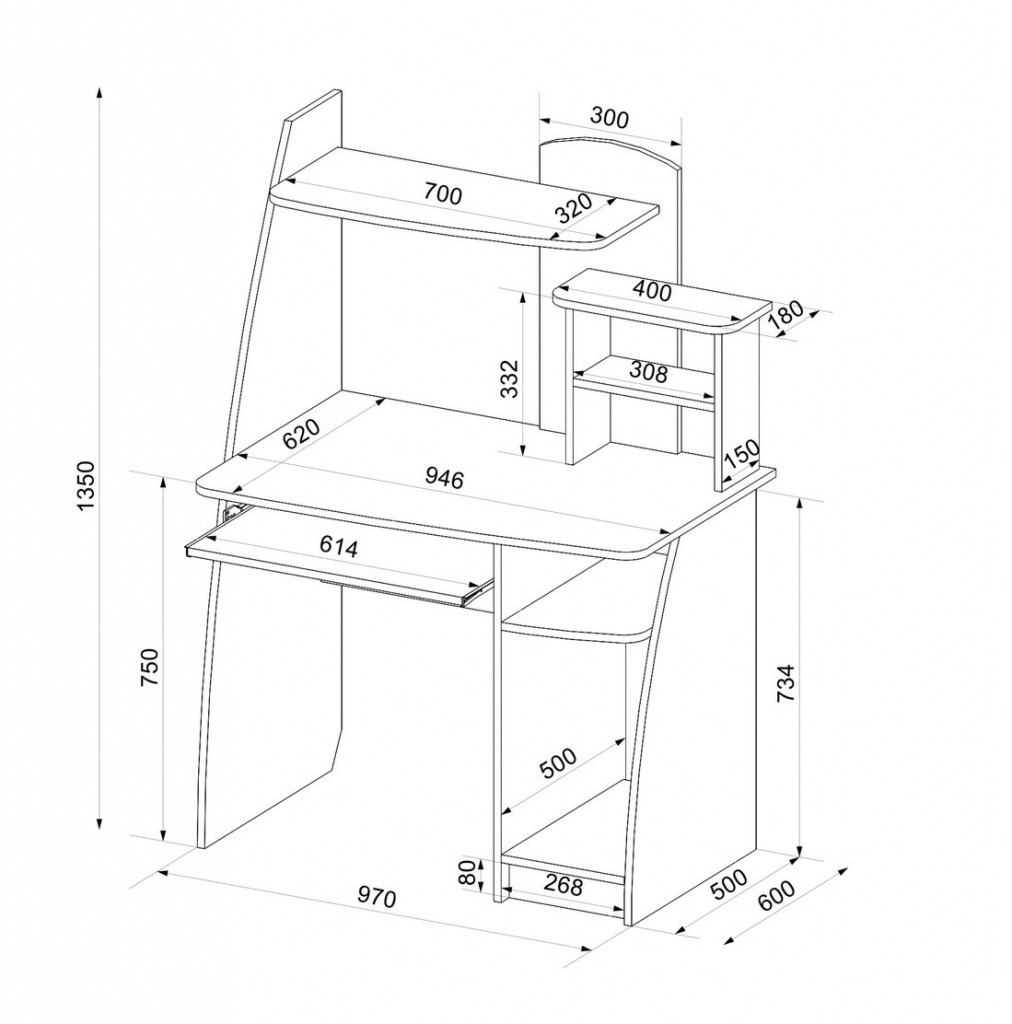 Очень интересный компьютерный столик, решил приобрести такой. Довольно комфортно за ним работать. На подставке для монитора имеется много места, так что можно расположить тетрадь или журнал, а боковые полки позволяют хранить все необходимое рядом, в пределах досягаемости. Но, что очень важно по моему мнению, это отдельное, прикрытое с обеих сторон место для системного блока, благодаря чему движение ног не задевают системник.