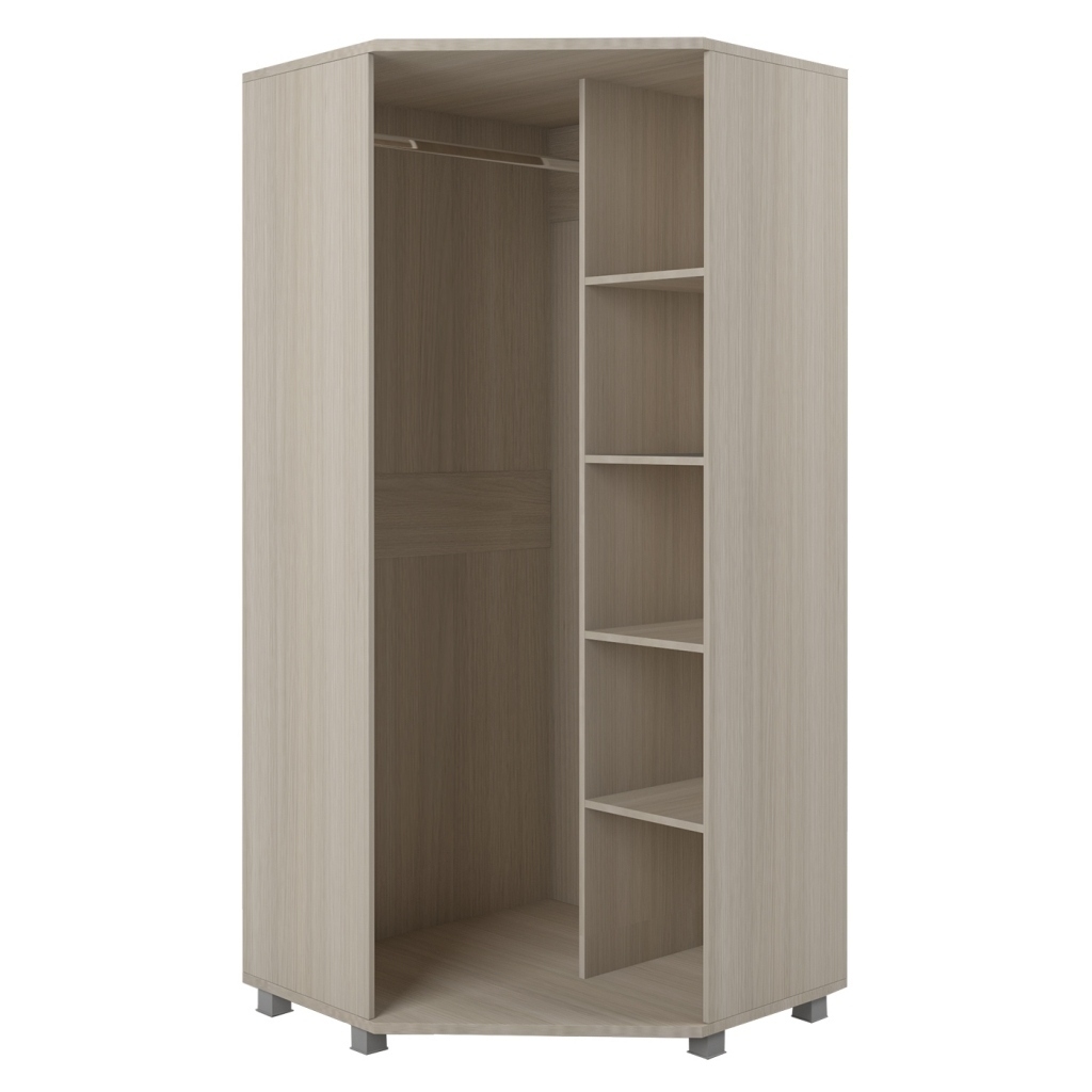 Шкаф угловой Глория - это функциональный, вместительный, большой угловой шкаф. Его можно поставить в спальню, прихожую, гостиную. Шкаф имеет современный дизайн и модный красивый цвет Ясень Шимо Светлый, благодаря этому, шкаф великолепно вписывается в интерьер любой комнаты. Шкаф изготавливается из высококачественного ЛДСП и экологически чистых материалов. За распашной дверкой находятся две секции. Одна секция со штангой для верхней одежды, а другая с полками. Замечательный шкаф будет радовать Вас, с ним Ваши вещи будут всегда в порядке.