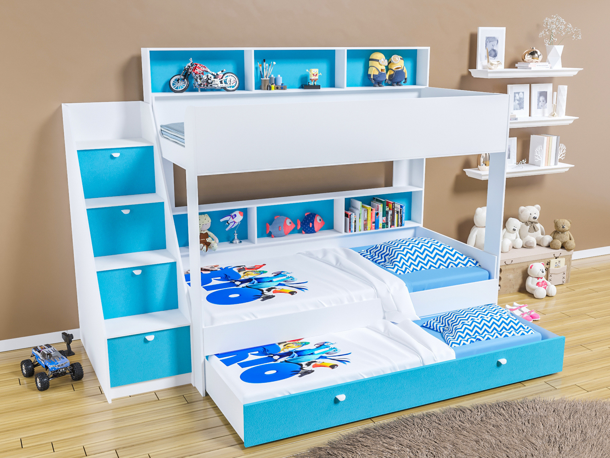 Трехъярусная кровать Golden Kids 10.1 белый (Голубой)