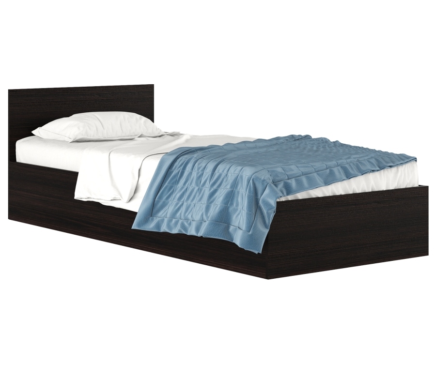 Базовая односпальная компактная кровать 70 см. с матрасом, выполненная в темной текстуре "Венге". Предназначена для небольших помещений, экономит пространство за счет небольшой ширины. Прекрасный вариант кровати для маленьких комнат, мебели для дачи, мебели для гостиниц. Кровать имеет основание. Спальное место - 70*190 см. Укомплектована матрасом - 70*190, чехол полисатин однотонный пл. 85 гр./м2, наполнитель вата рв цветное. Поставляется в индивидуальной упаковке в скрученном виде. Чехол - цветной. Оттенок может незначительно отличаться от представленной картинки из-за цветопередачи различных мониторов