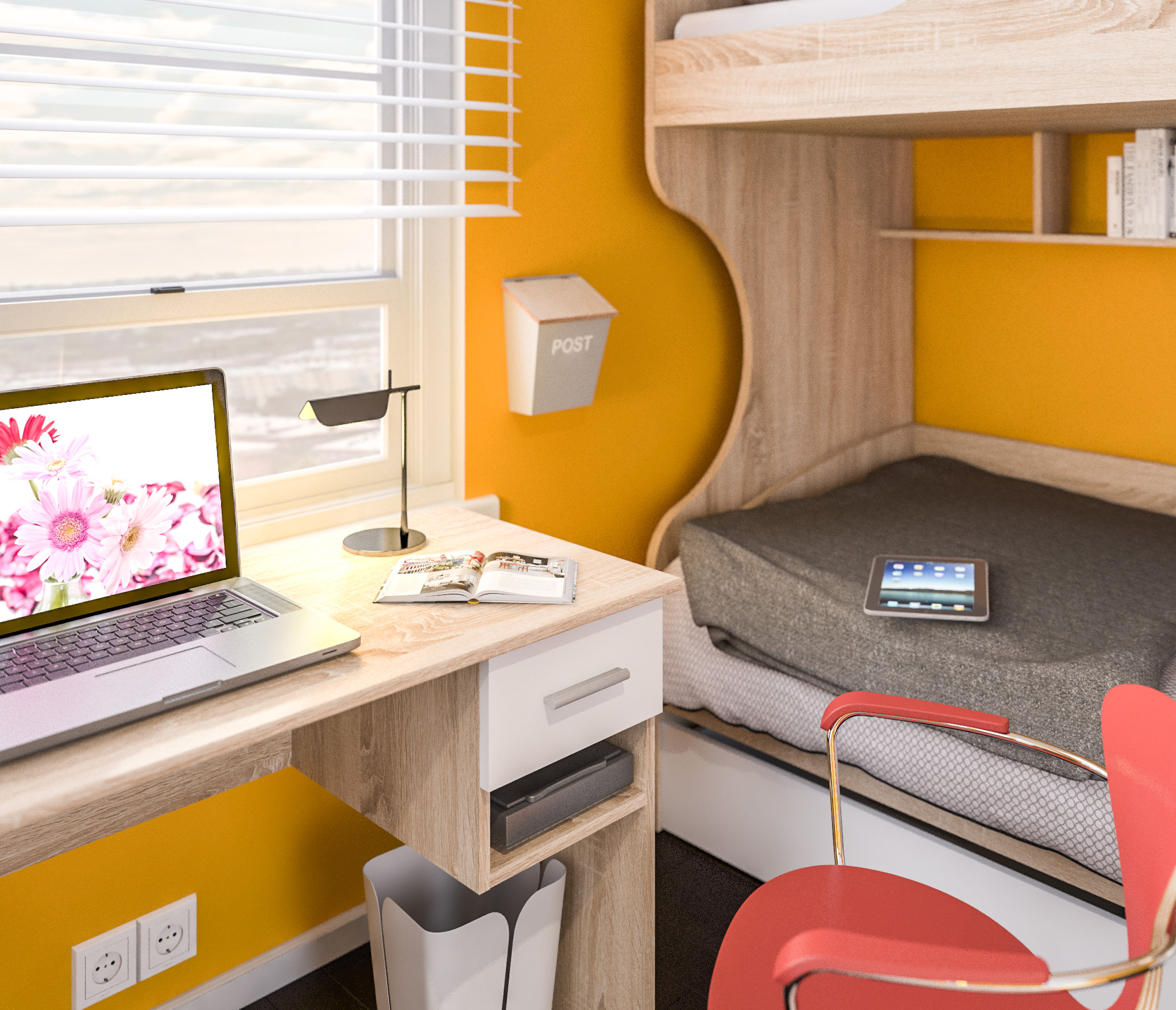Мы заказывали отдельно составляющие - 3хдвкрный шкаф, кровать двухярусная с ящиками, лестница, стол угловой, стеллаж. Общее впечатление хорошее. Муж собрал всю мебель неспеша за 2 дня. Смотрится стильно, дочке и нам понравилась мебель, НО!!! Хорошо, что переехали мы не сразу, а через неделю после сборки, т.к сначала стоял очень резкий запах, который выветрился дня через 3 и спустя ещё неделю остаётся, но еле уловимый. Из-за этого моё впечатление было испорчено.... А так рекомендую!