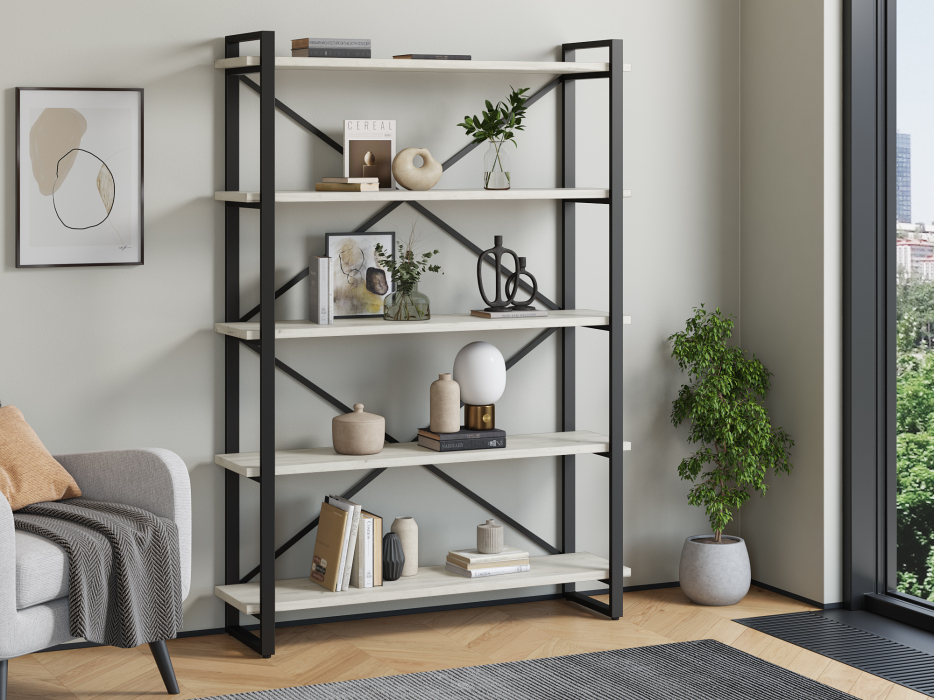 Стеллаж Айсберг Лофт 120х182-2 черный (Дуб крафт белый)