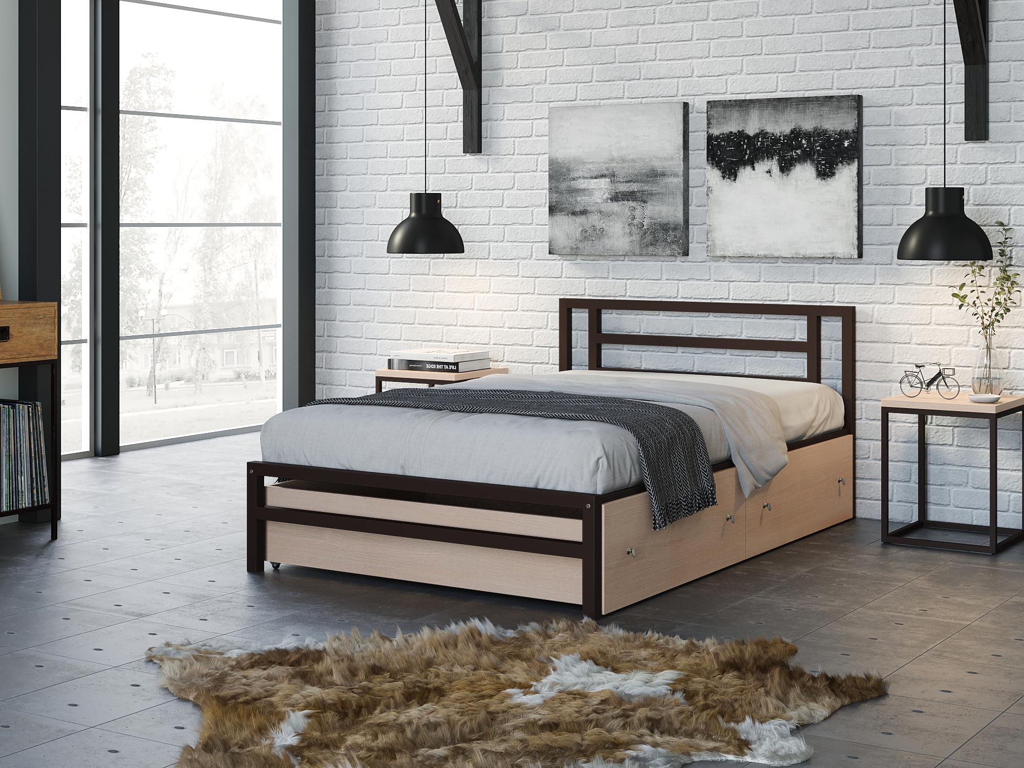 Односпальная кровать Титан 120 ящики дуб молочный (Коричневый)