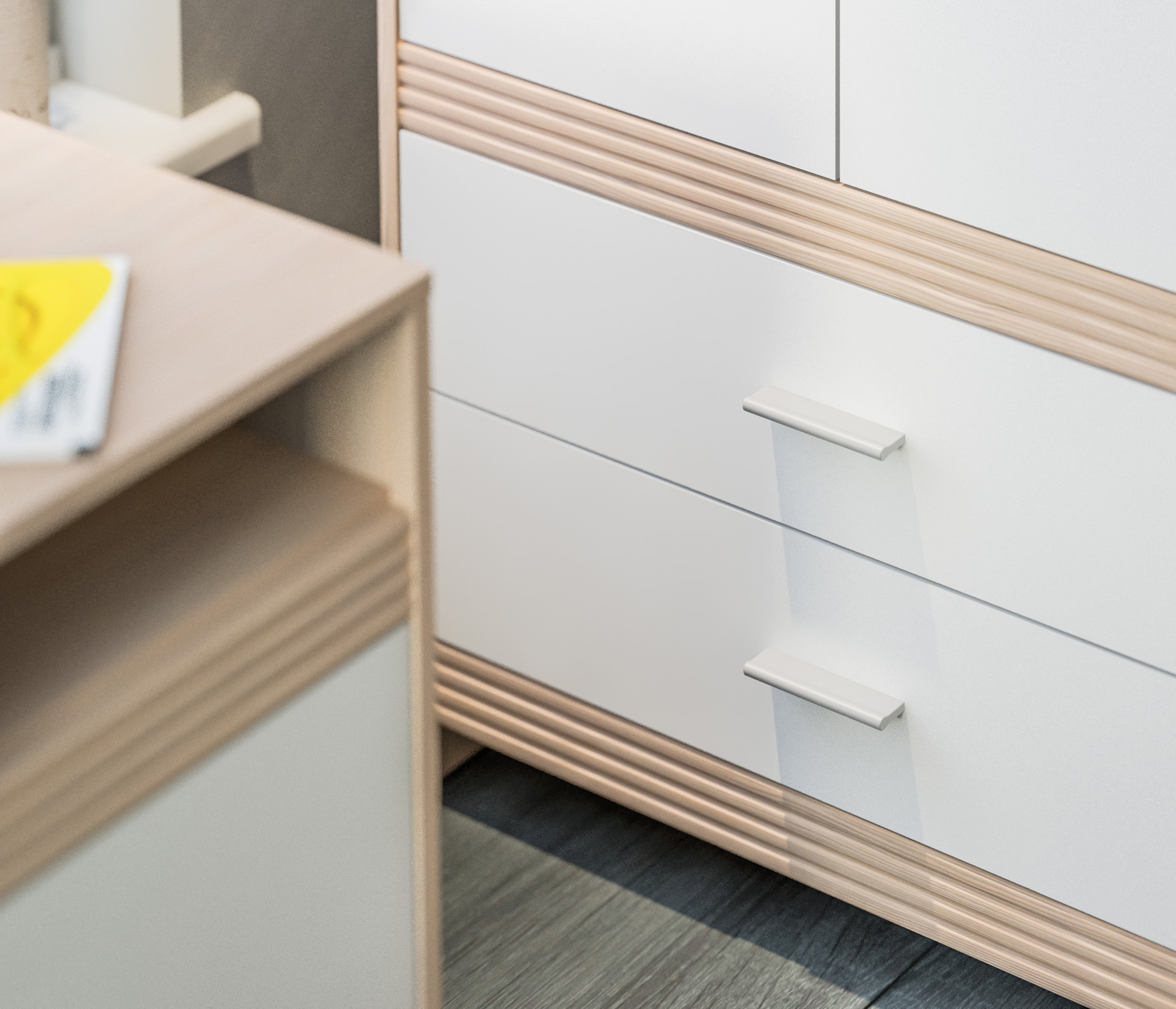 Детская спальня Дакота позволит бюджетно организовать рабочее и спальное место, а также место для хранения вещей. Ящик для белья может быть использован как дополнительное спальное место. В состав комплекта входит:Кровать 950х784х2056мм , размер спального места:90х200см, дополнительное спальное место (80х190см), 2-х дверный шкаф с 2 ящиками 832х2204х557мм, письменный стол 1234х763х554мм