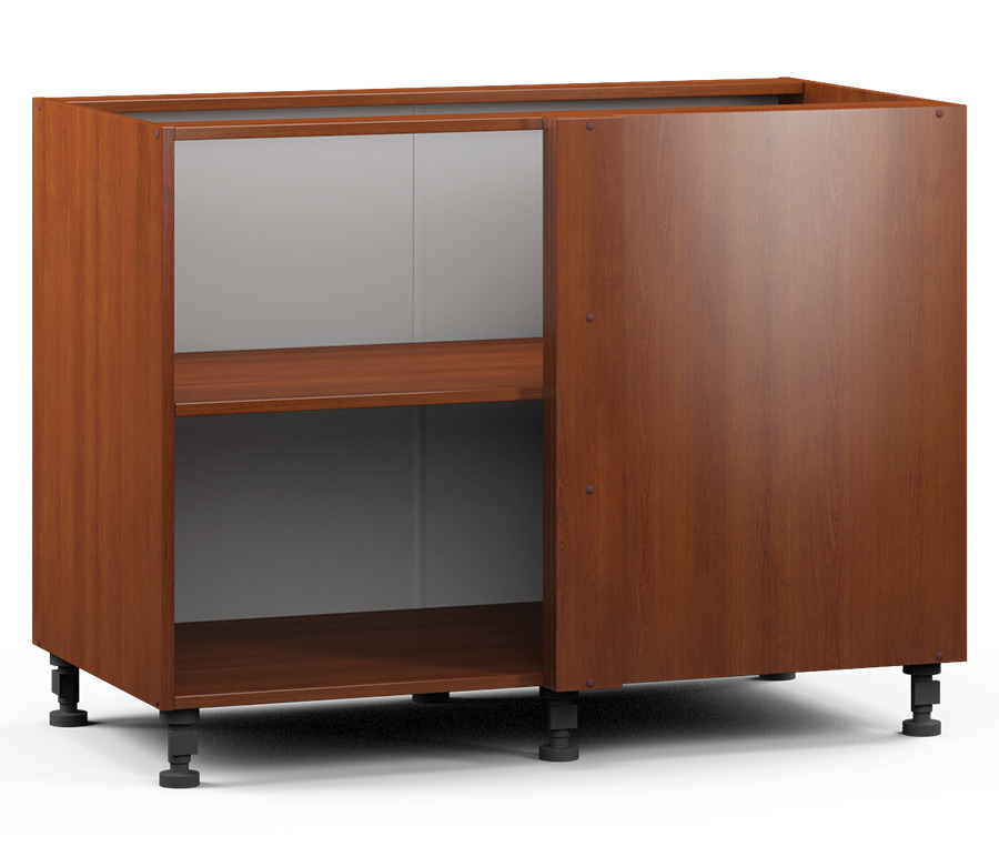 Корпус для практичного углового шкафа. Его поверхность можно использовать и как стол. Одна часть шкафа глухая, а вторая комплектуется дверцей. Дверцу и столешницу нужно заказывать отдельно.Варианты цвета шкафа дуб Ривер и «орех».
