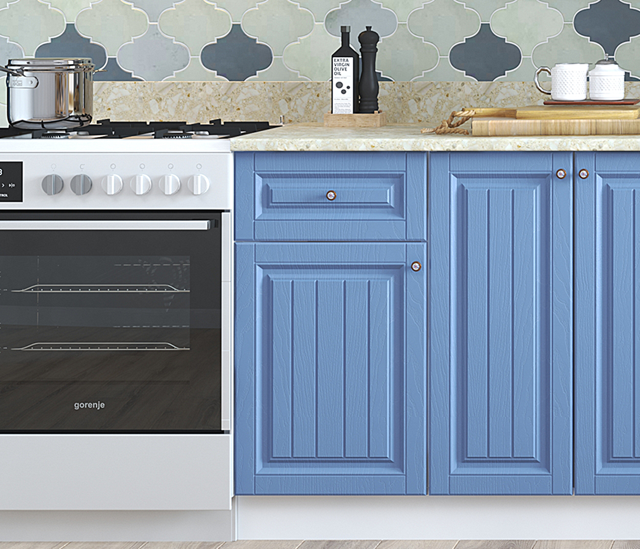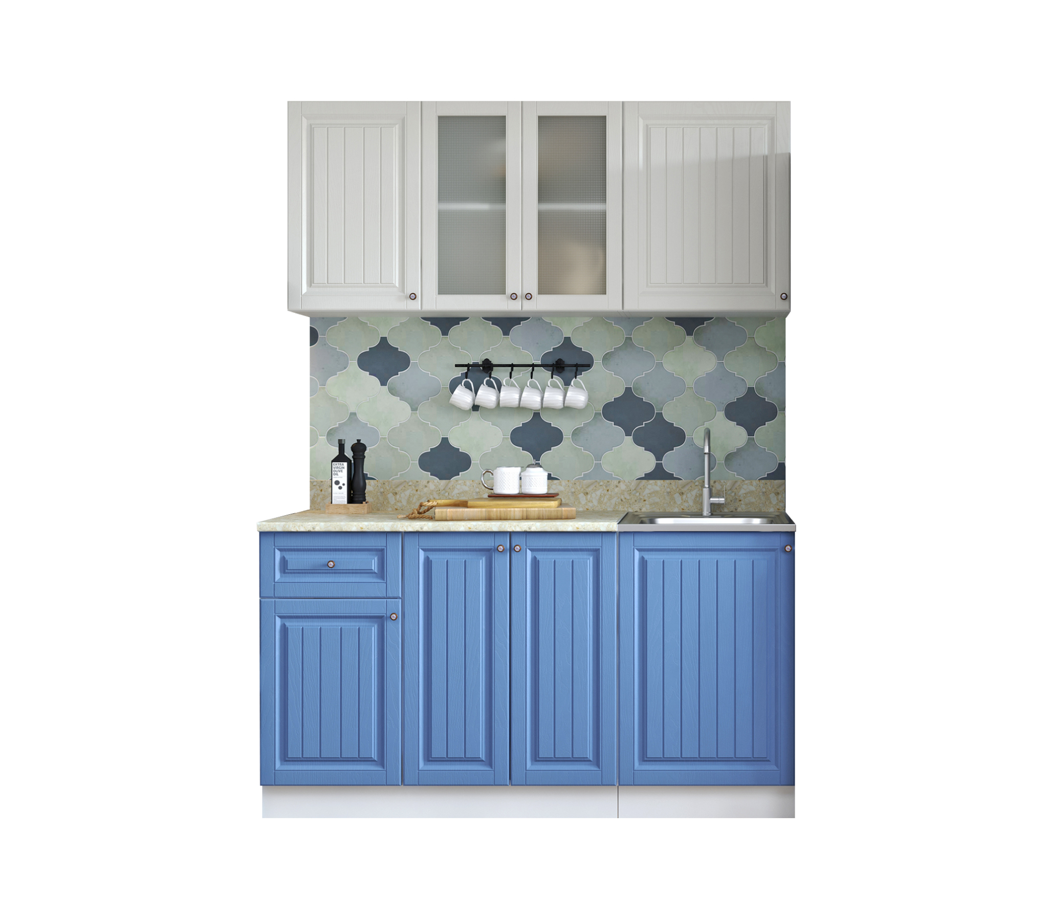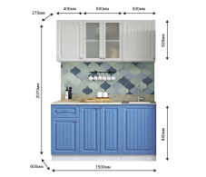 Кухня Хозяюшка 1,5 м Акация белая/Деним МДФ Код R0000244927
