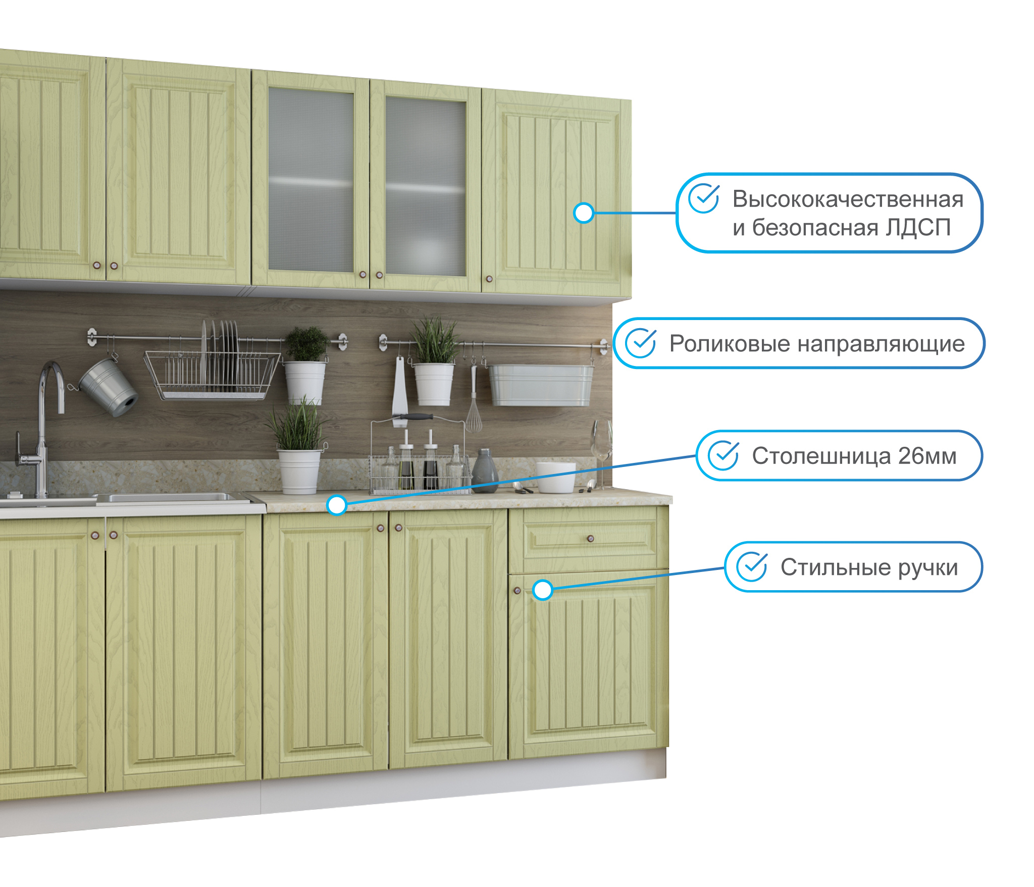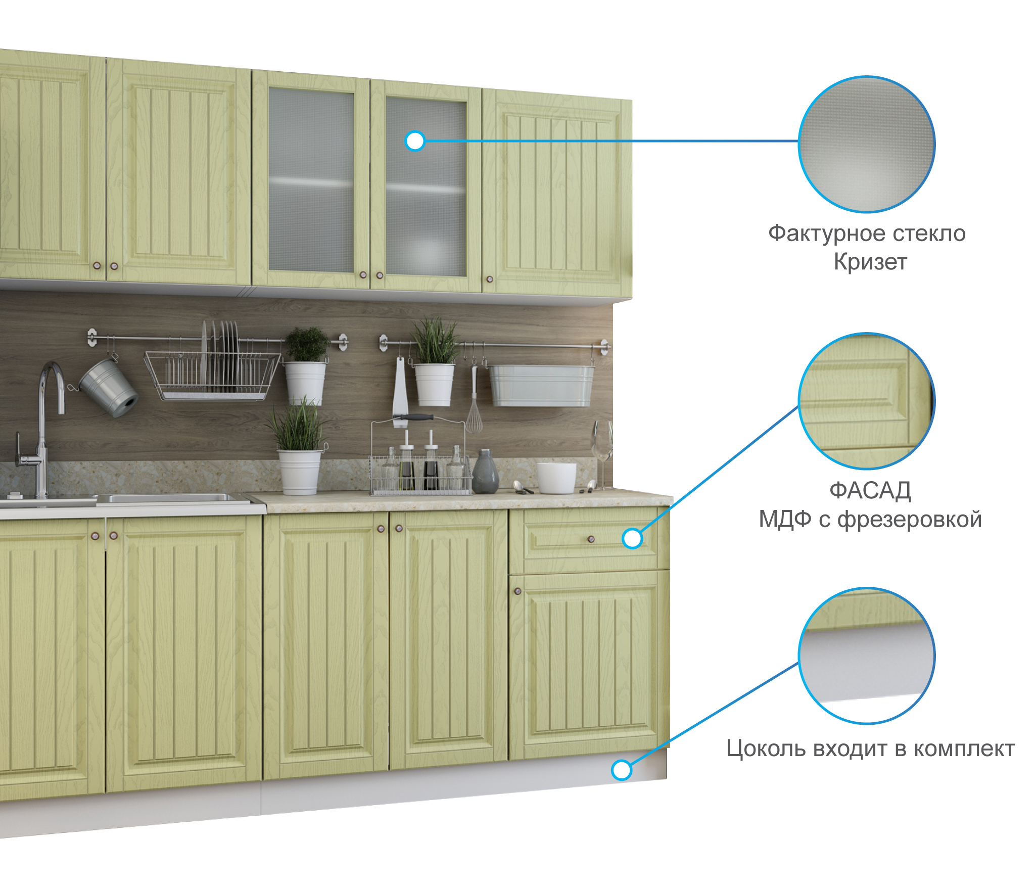 Кухня Хозяюшка 2,0 м Фисташка МДФ Код R0000244939
