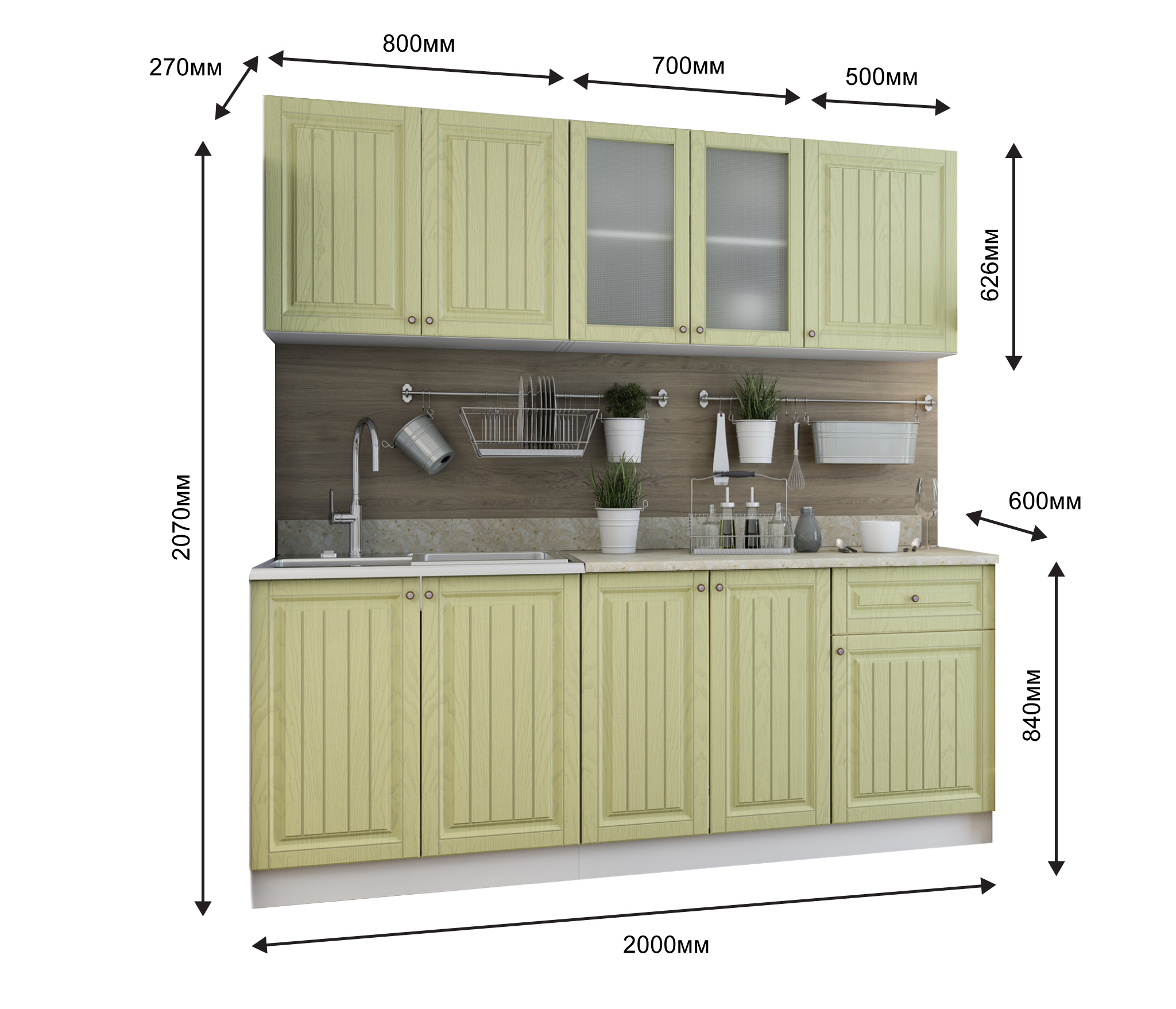 В реальности кухня оказалась лучше, чем я ожидала: фасады из МДФ с эффектом окрашивания эмалью, и цвет очень приятный, ближе к светлому оливковому, желтизны как у фисташки нет. К Провансу очень подошла. Заказала 2-х метровую, и уверена была, судя по фото, что она трехсекционная. Оказалось, что это два шкафа: 120 и 80 см. Такие же наверху. Поэтому на угол поставить не получилось. Но поскольку очень подошла по стилю, решила оставить. Столешница только на стол 120 см. Так что мойка только накладная. Дозаказывала другую единую столешницу и врезала мойку. Пишу так подробно, потому что сама столкнулась с этими проблемами. Глубина шкафов 40(!) см, так что сзади кухни 20 см неиспользованного пространства. Сборку заказывала на фабрике, привезли битые стекла, сам сборщик открыл рекламацию. Если собираете сами, с рекламацией будут проблемы. Стекла заменили через неделю. Сборка средняя, не без огрехов, но в целом норм. Общее впечатление от кухни хорошее, звезды сняла за указанные недостатки. Сушки для посуды нет, полки в этом шкафу тоже.