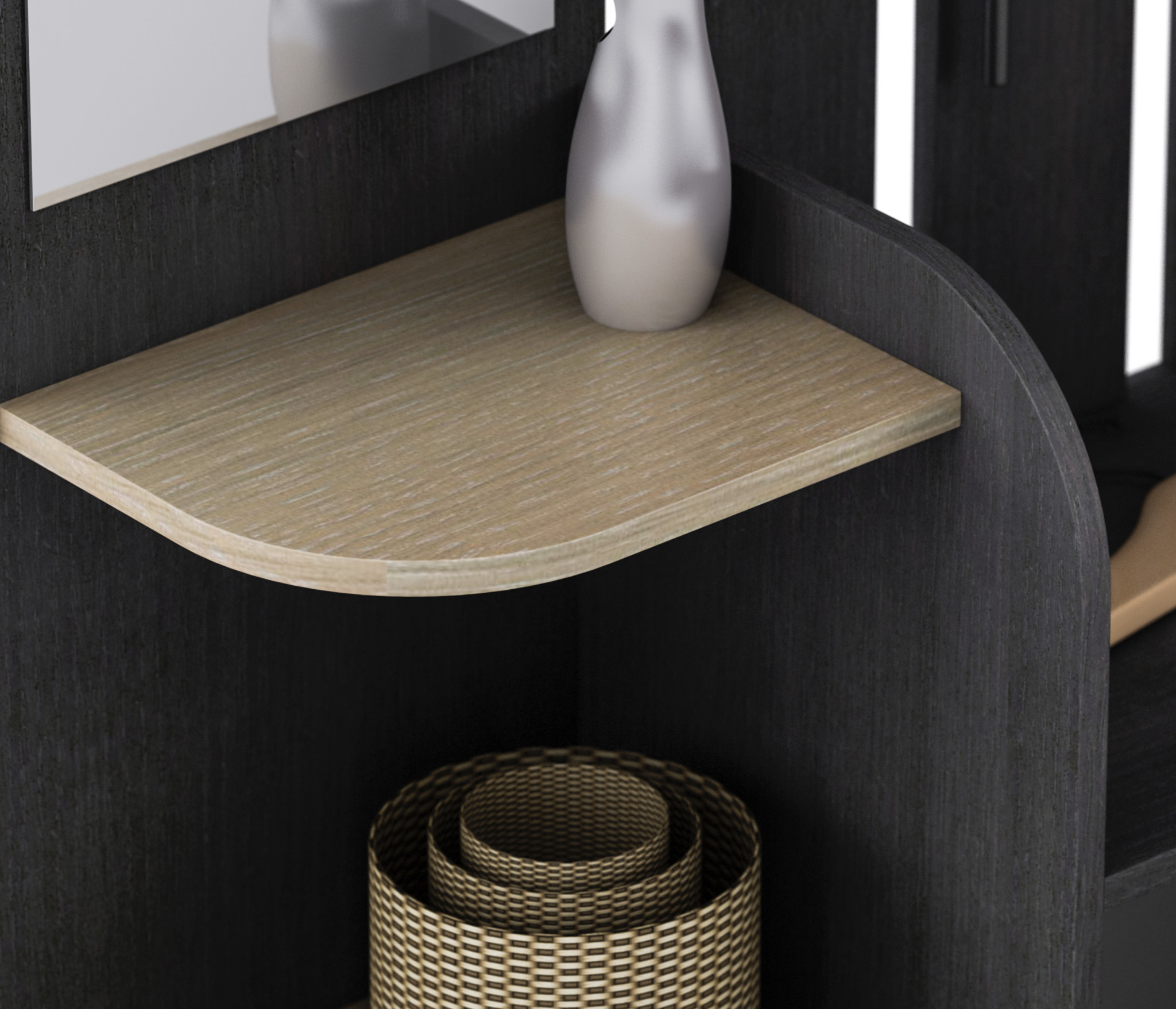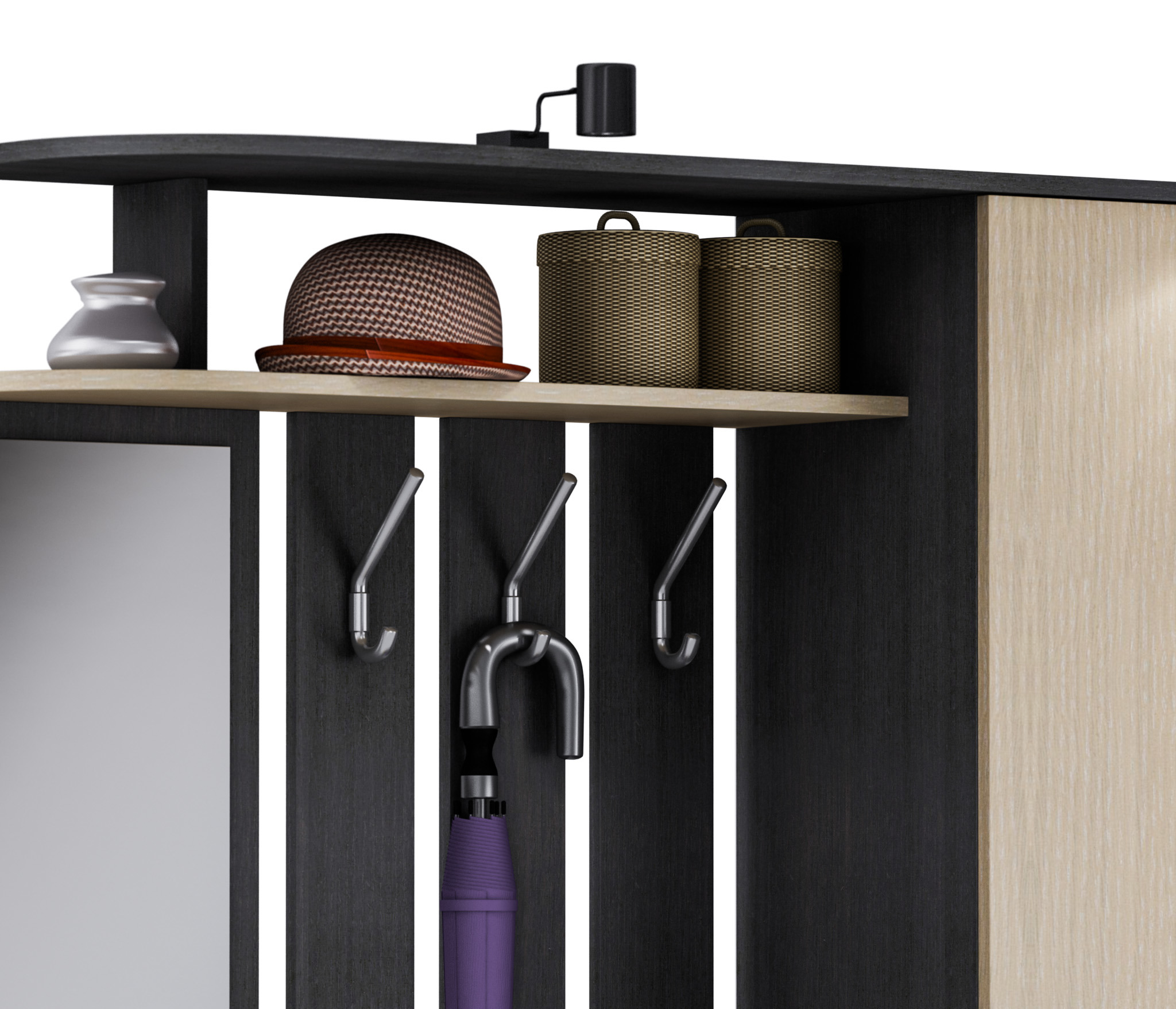 Прихожая Мона универсальна и может быть установлена как на правую, так и на левую сторону. Возможность зеркально отразить конструкцию позволяет функционально разместить мебель в любом помещении.