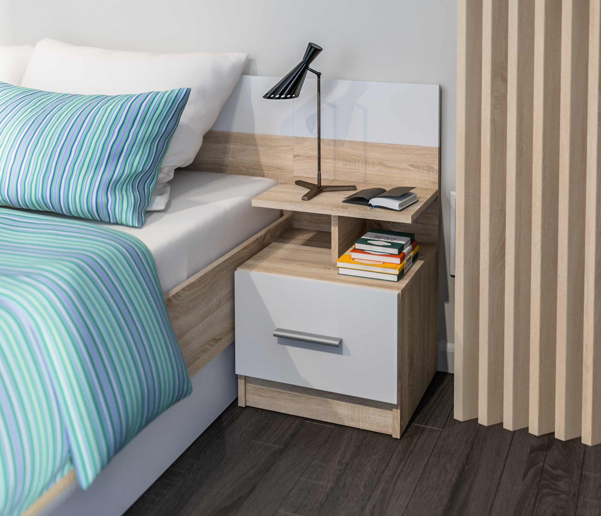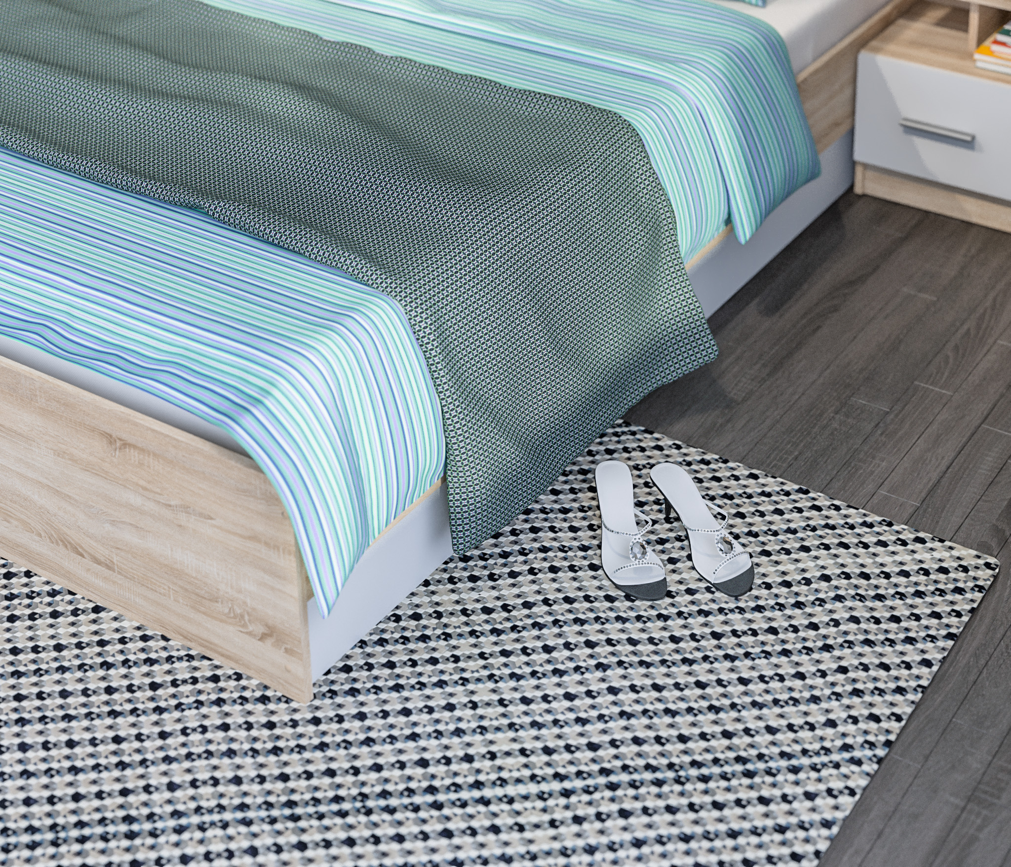 В данный комплект входит: Шкаф 4-х дверный, кровать (спальное место 160х200см), 2 прикроватные тумбы.