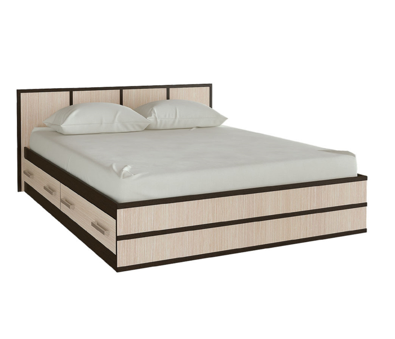 Кровать Сакура — оригинальная модель в японском стиле с характерным разбитием поверхностей на правильные геометрические области, разграниченные контрастными вставками. Кровать оборудована 2 бельевыми ящиками (ручки на фасадах цвета хром со вставками венге), основание кровати — настил ДСП.