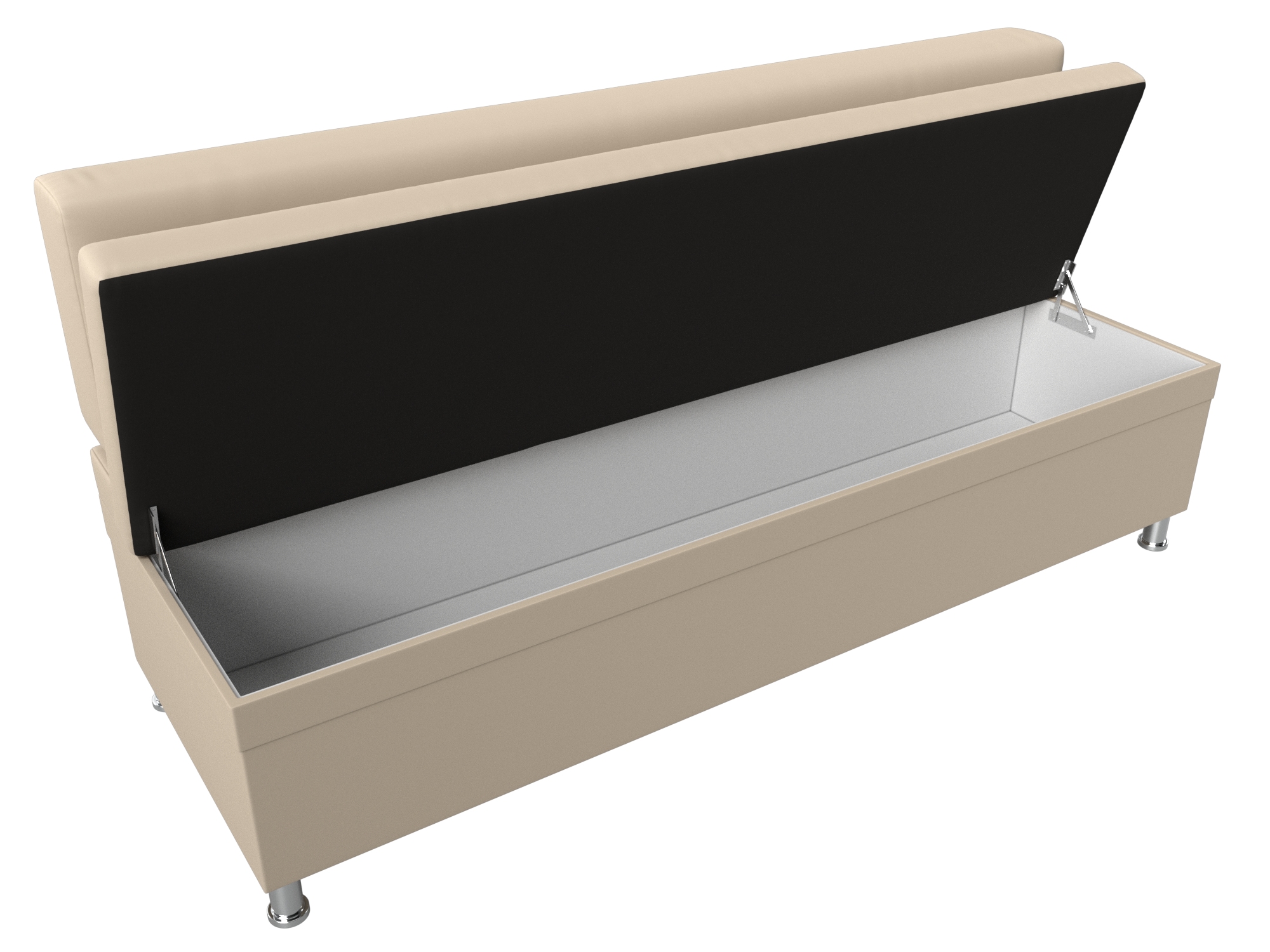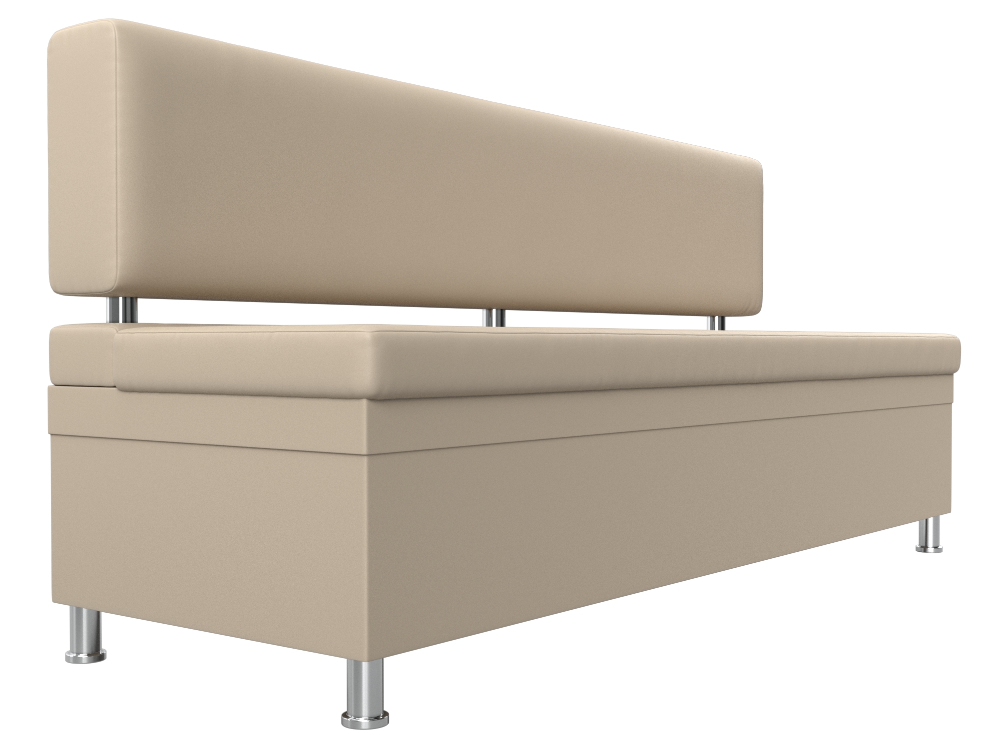 Стайл – прямой кухонный диван с ящиком для хранения продуктов и домашней утвари. Он надежно стоит на высоких ножках. Спинка модели крепится к основанию при помощи металлических труб. Под сиденьем расположена ниша для хранения вещей. Конструкции придают устойчивость и надежность металлические крепкие ножки.