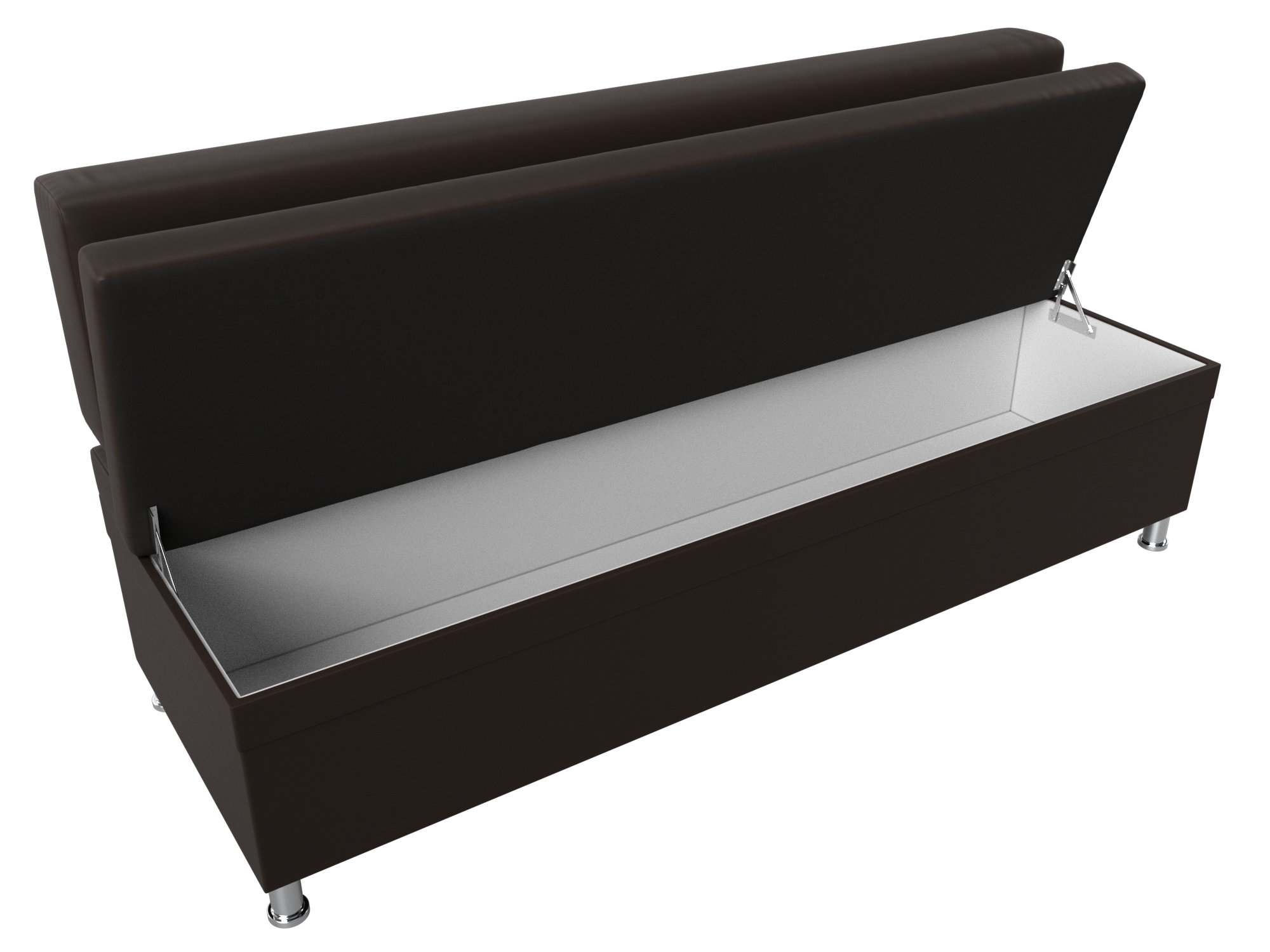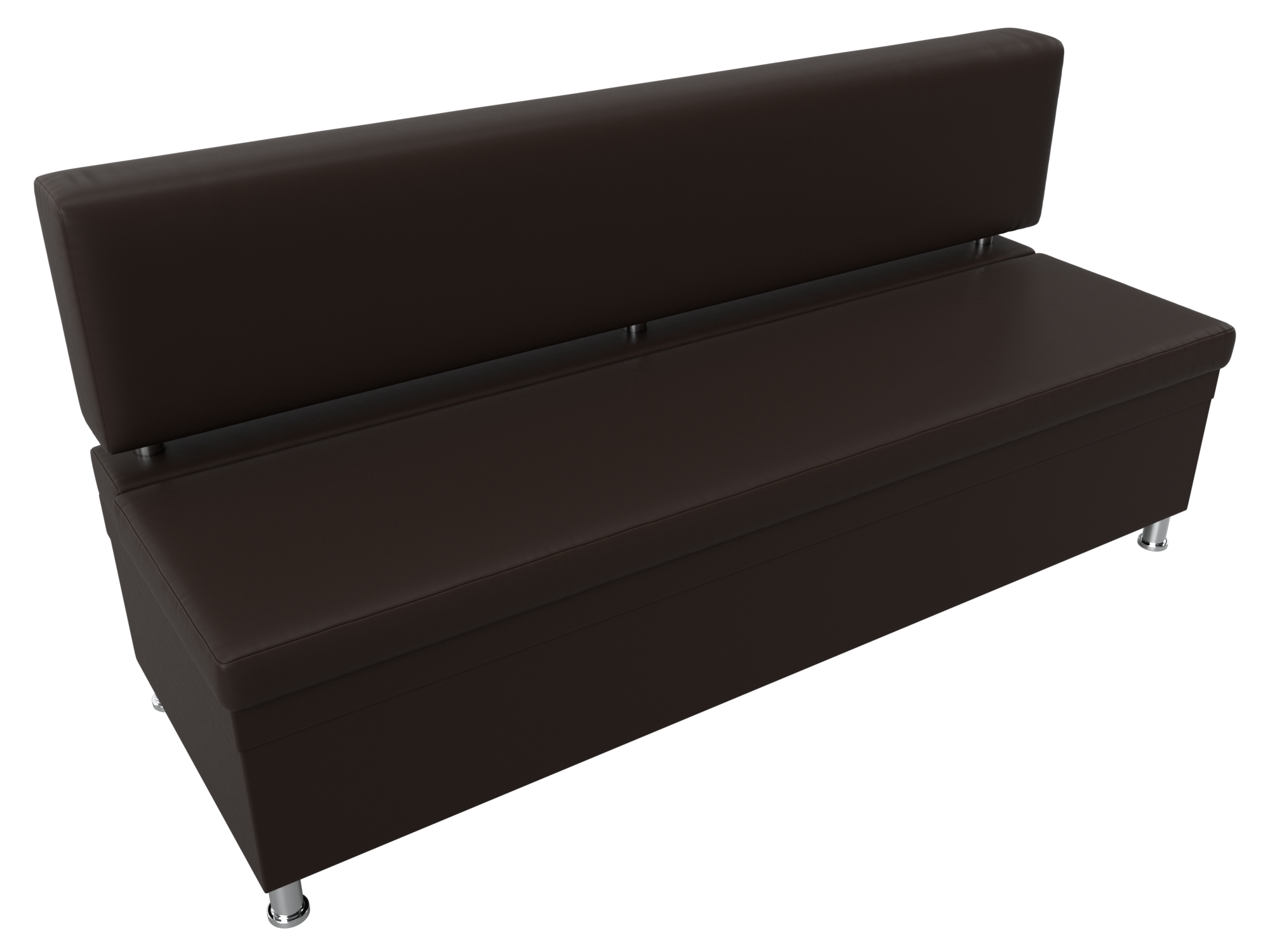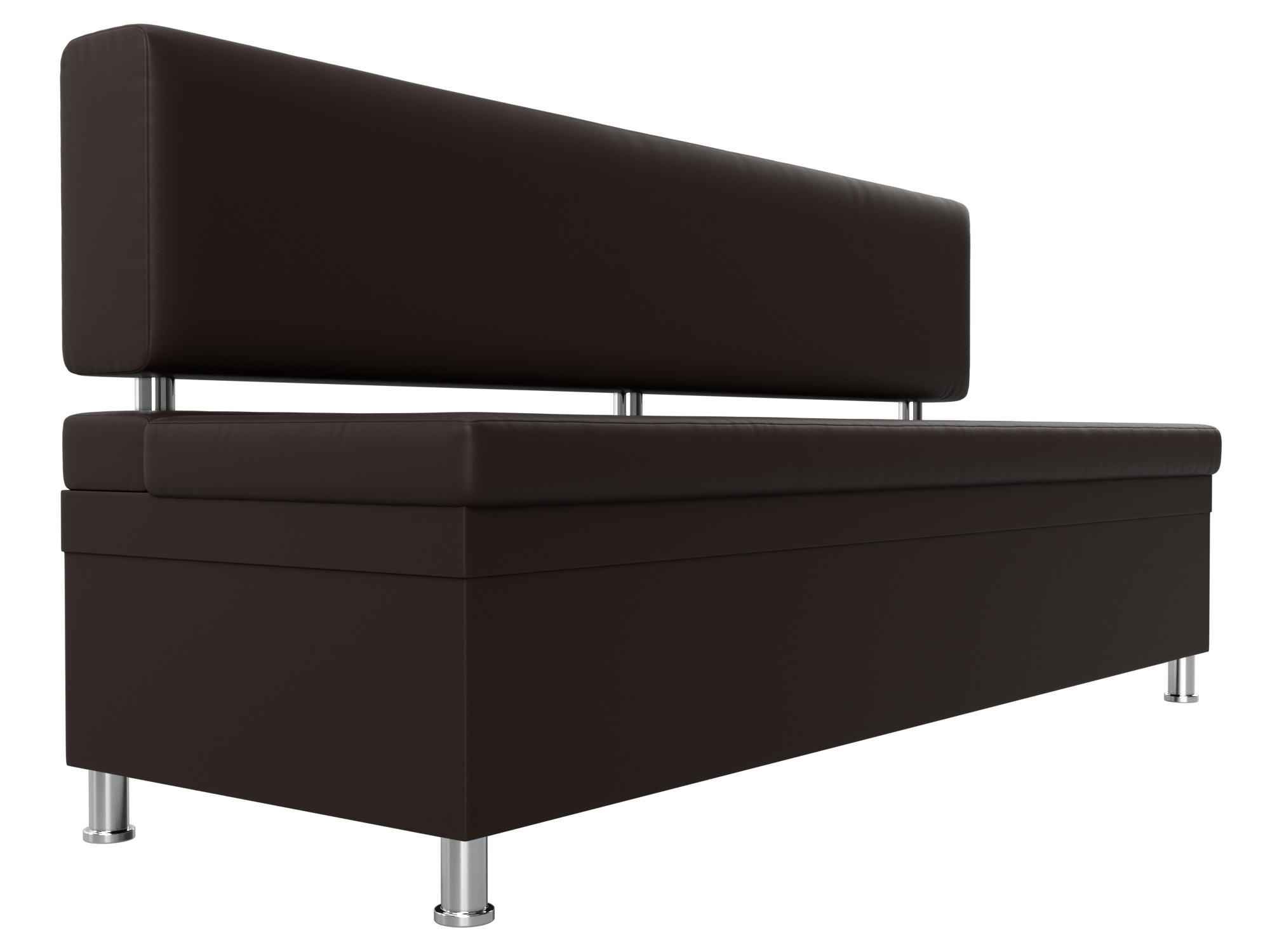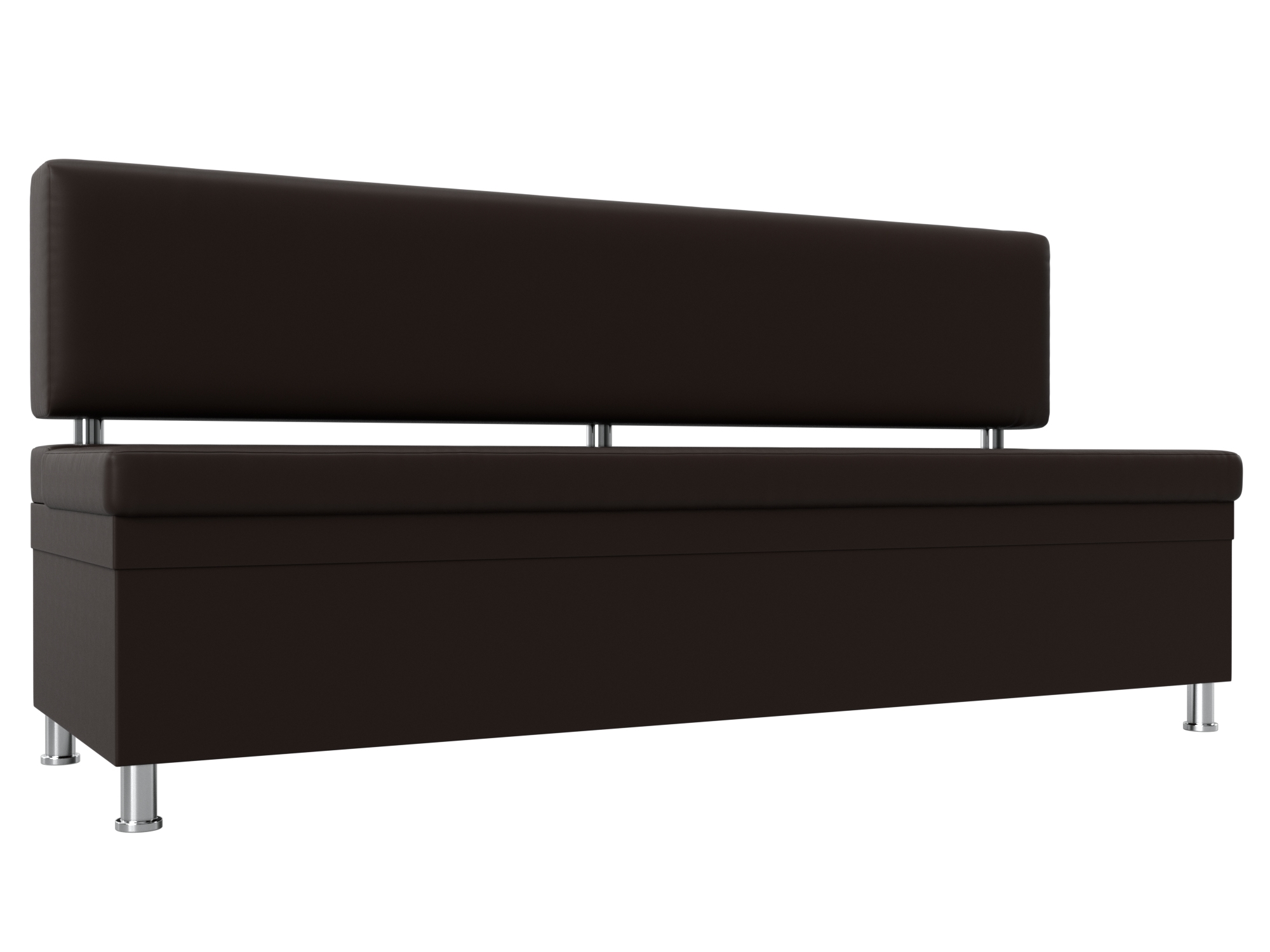 Стайл – прямой кухонный диван с ящиком для хранения продуктов и домашней утвари. Он надежно стоит на высоких ножках. Спинка модели крепится к основанию при помощи металлических труб. Под сиденьем расположена ниша для хранения вещей. Конструкции придают устойчивость и надежность металлические крепкие ножки.
