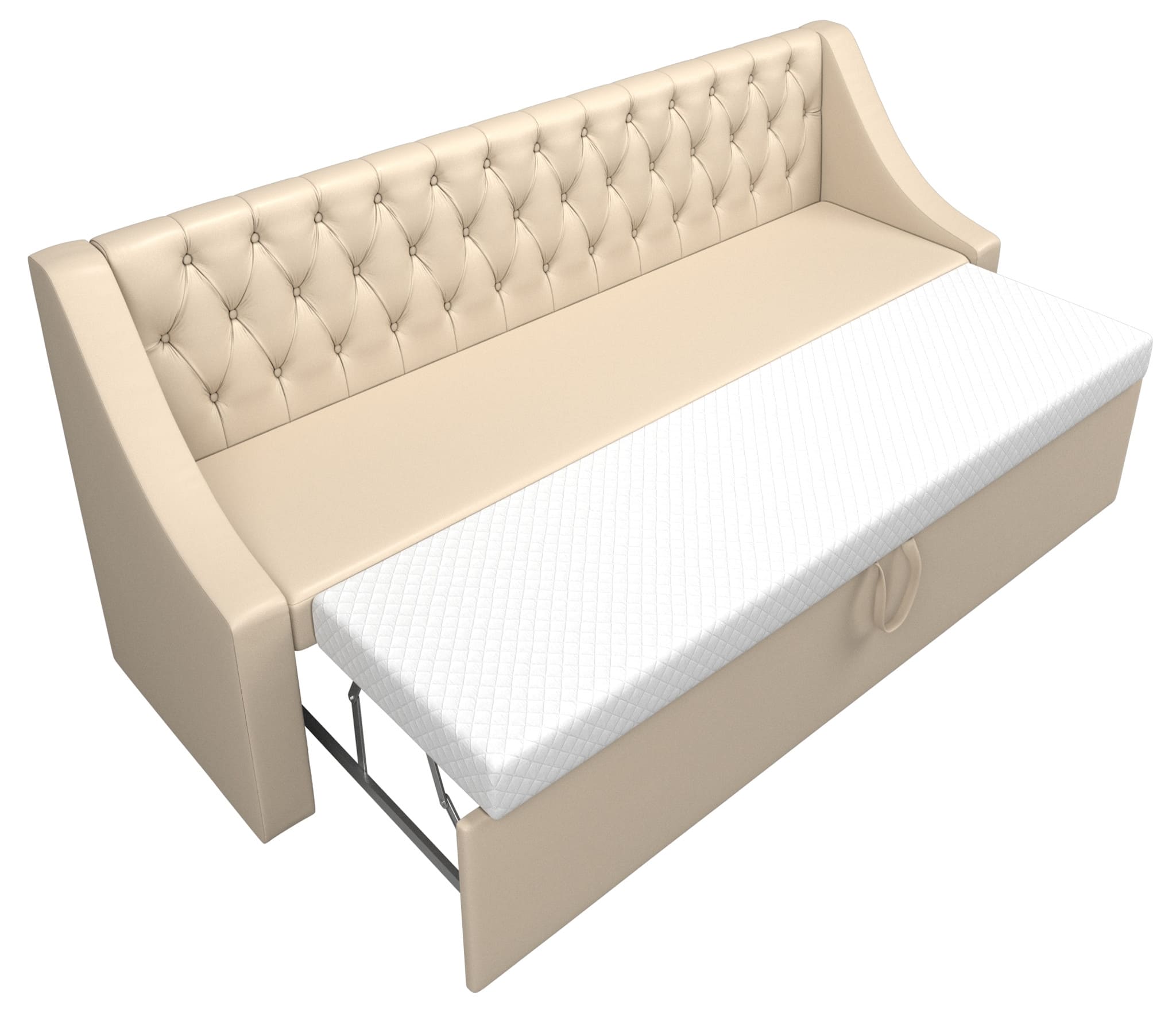 При компактных габаритах: 199х63х87 см подойдет для кухонных комнат любых размеров, легко раскладывается, обеспечивая спальное место 94х180 см.