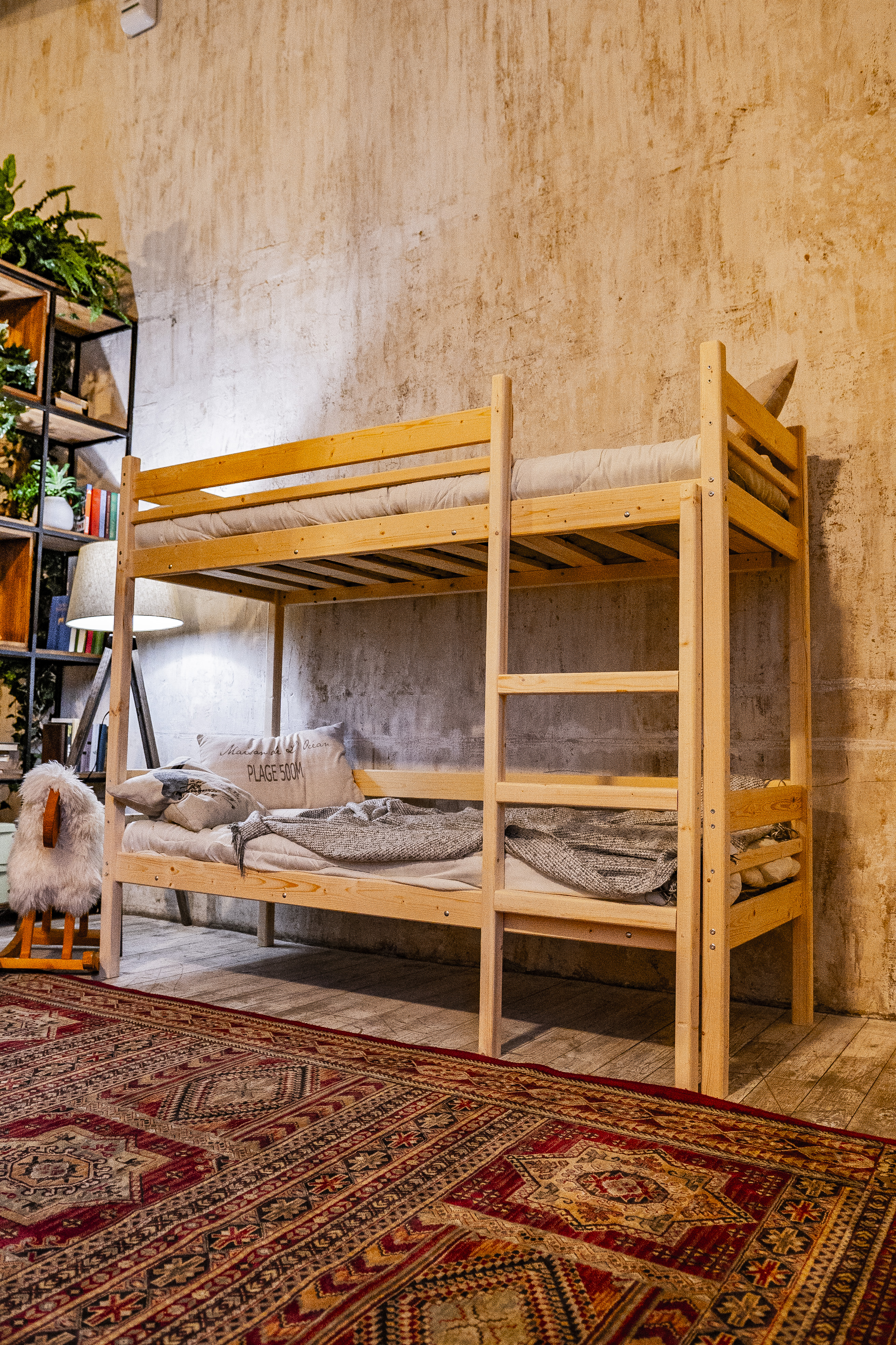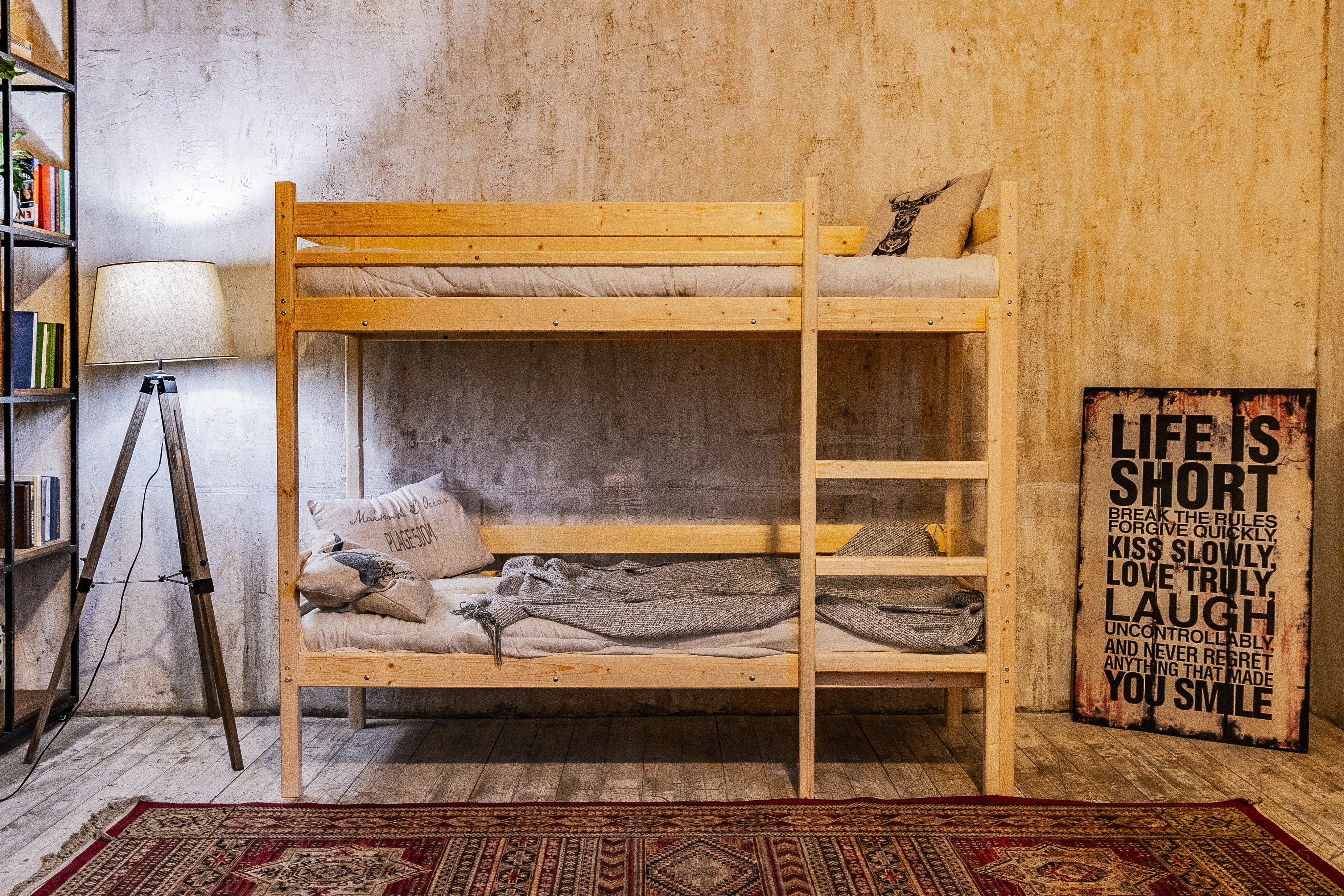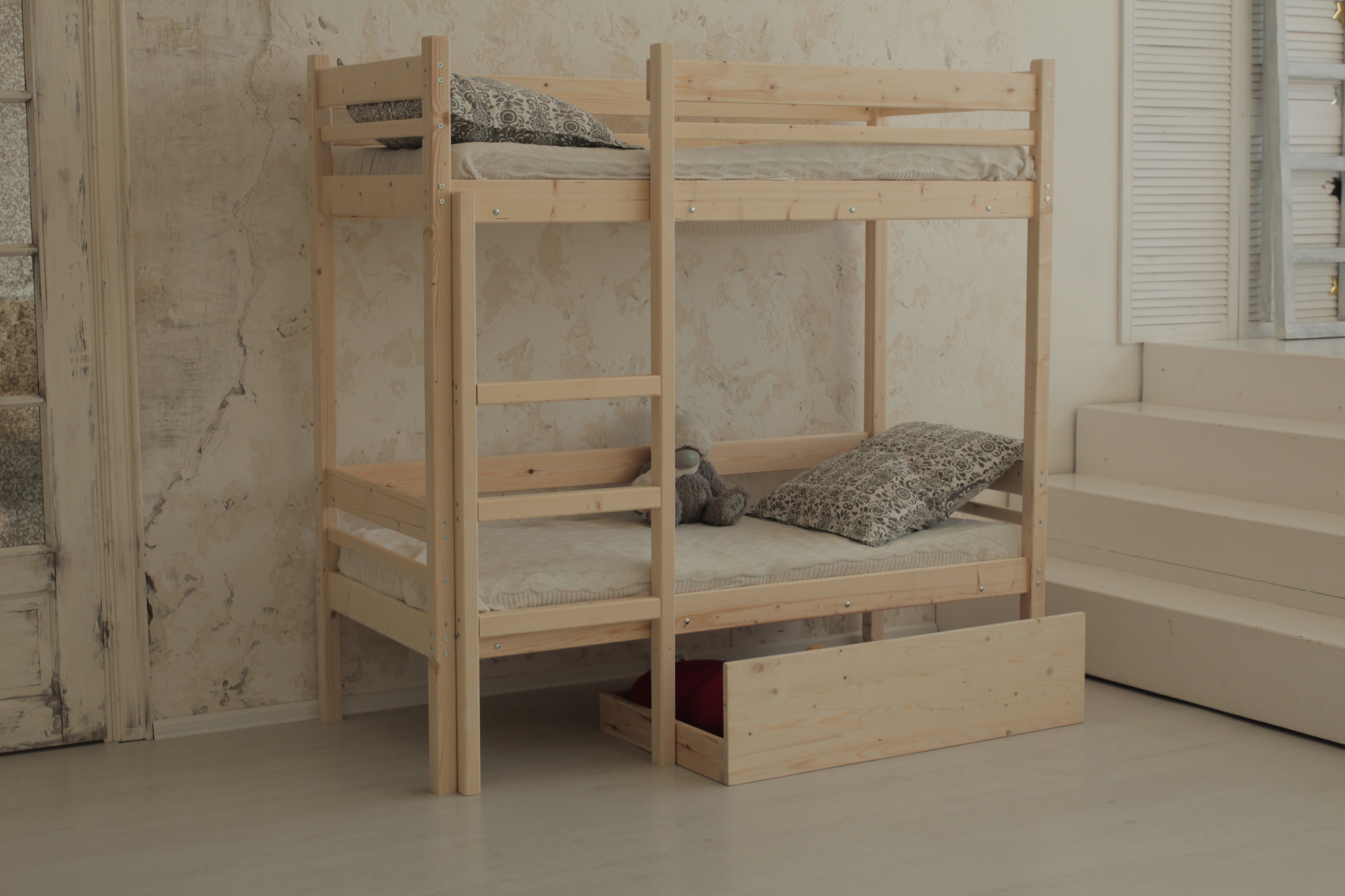 Купил внукам на дачу. Немного подшкурил, чтобы покрыть лаком. В остальном отличная кровать.