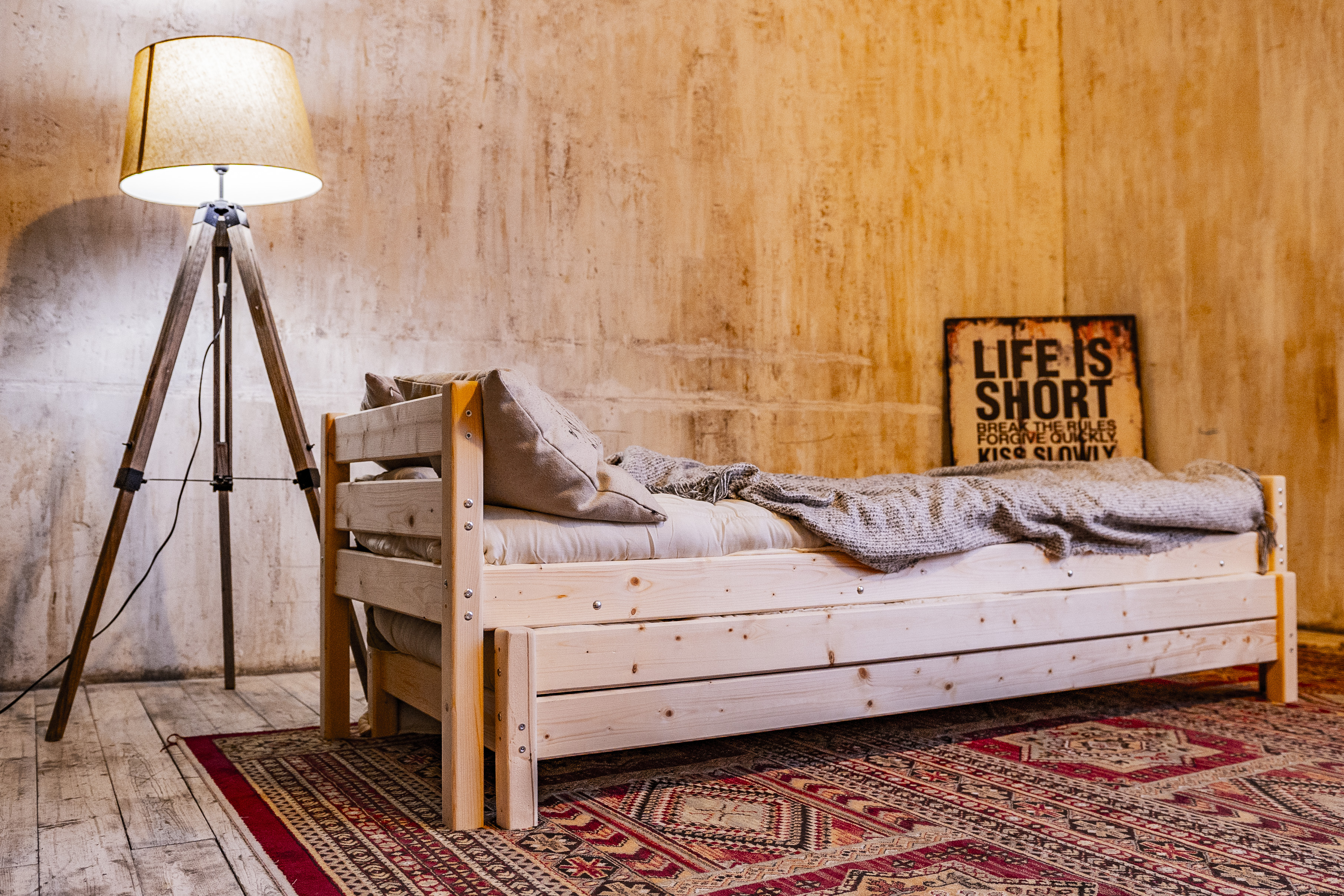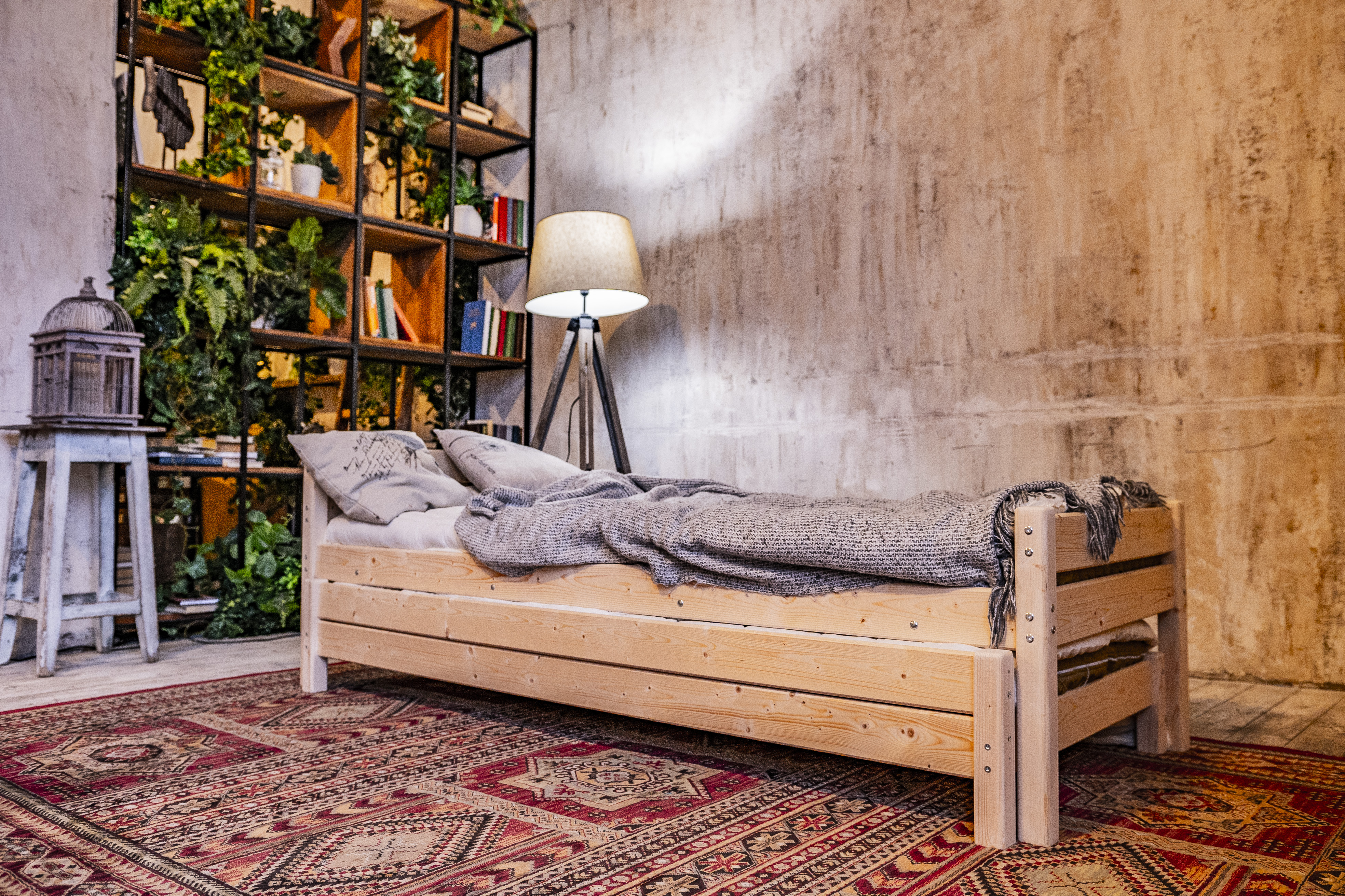 Очень простая кровать, лёгкая в перевозке и сборке. Выкатное второе спальное место существенно экономит пространство. Взяли в общежитие.
