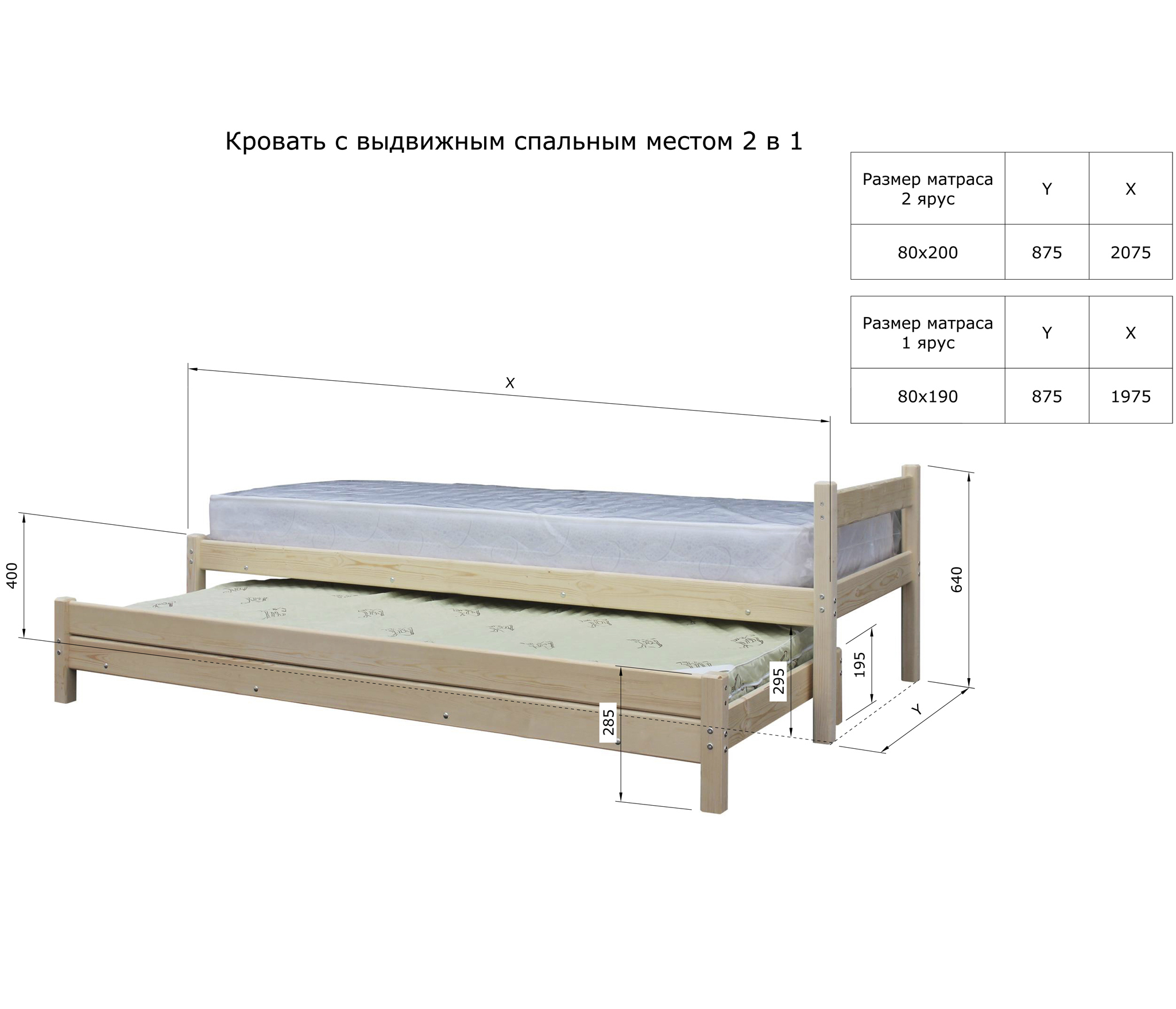 Кровать с выдвижным спальным местом 2 в 1 Код I0000192246