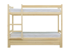 Заводская комплектация представлена двухъярусной кроватью, выкатная кровать, качественной фурнитурой, трех комплектов подматрасников, бортом для второго яруса, лестницей, ключом и схемой сборки/разборки.