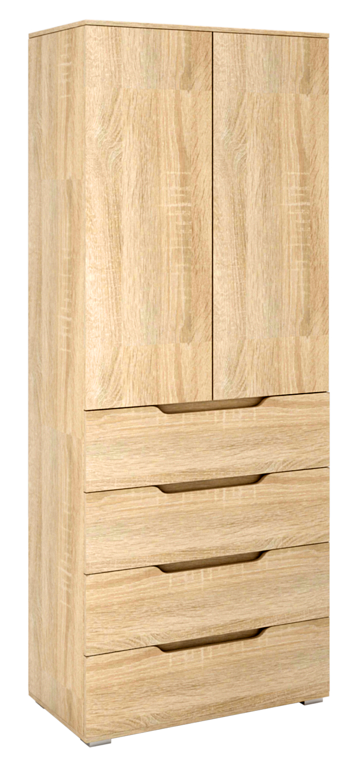 Шкаф-комод "Нейт" - это универсальный элемент, основой которого является шкаф оснащенный выдвижной штангой для вешалок-"плечиков" закрытый двумя распашными дверками, совмещенный с удобным вместительным комодом на четыре ящика. Шкаф-комод "Нейт"- продолжение одноименных линеек столов и комодов, отличительной особенностью которых является отсутствие привычной классической ручки. Роль ручки в шкафах-комодах "Нейт" играет фигурный выпил в фасаде. Благодаря универсальной конструкции ящиков, при сборке вы сможете самостоятельно выбрать понравившийся вам вариант установки фасадов. Выдвижные ящики устанавливаются на бесшумные полновыдвижные шариковые направляющие. Изделие изготовлено из качественной ламинированной плиты ДСП. Торцы изделия обработаны надёжной ударопрочной кромкой ПВХ. Продукция сертифицирована. Гарантия - 2 года.