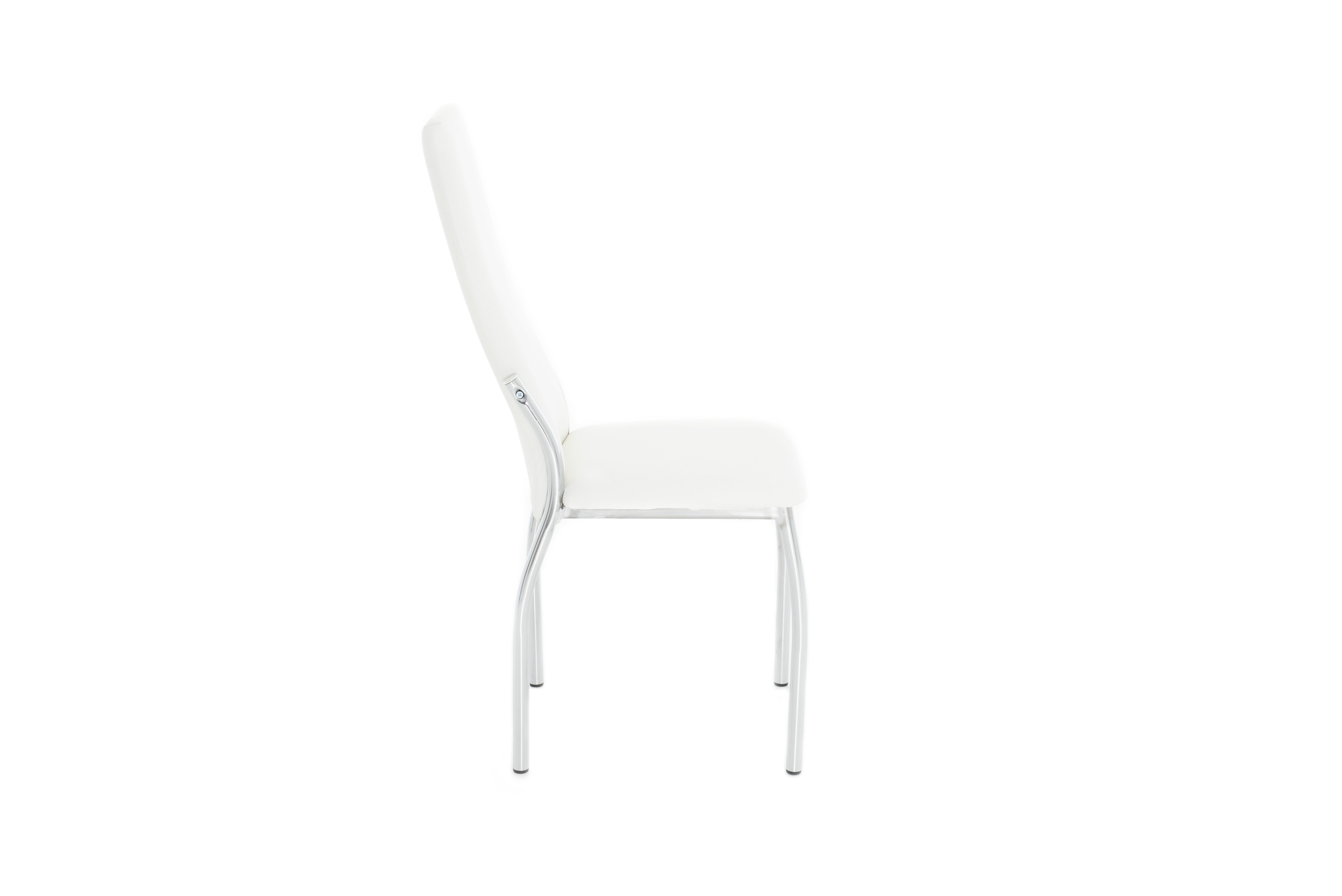 Стул на металлокаркасе Асти. Каркас - хромированный. Мягкая спинка и сиденье из пенополиуретана обиты экокожей кремового цвета. Допустимая нагрузка на стул - 70 кг. Габаритные размеры (см): Ширина: 43; Глубина: 37; Высота: 108; Высота сиденья: 48
