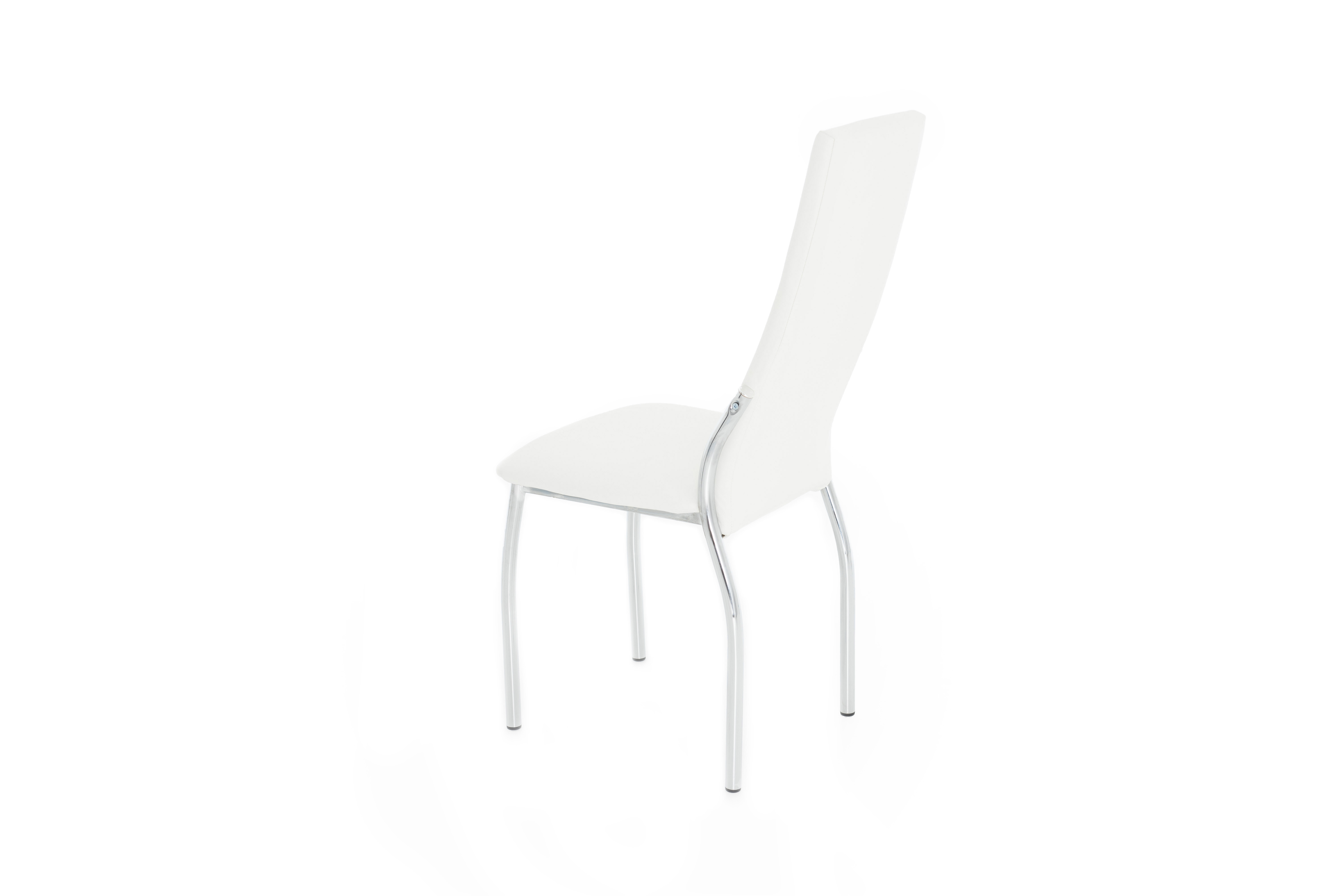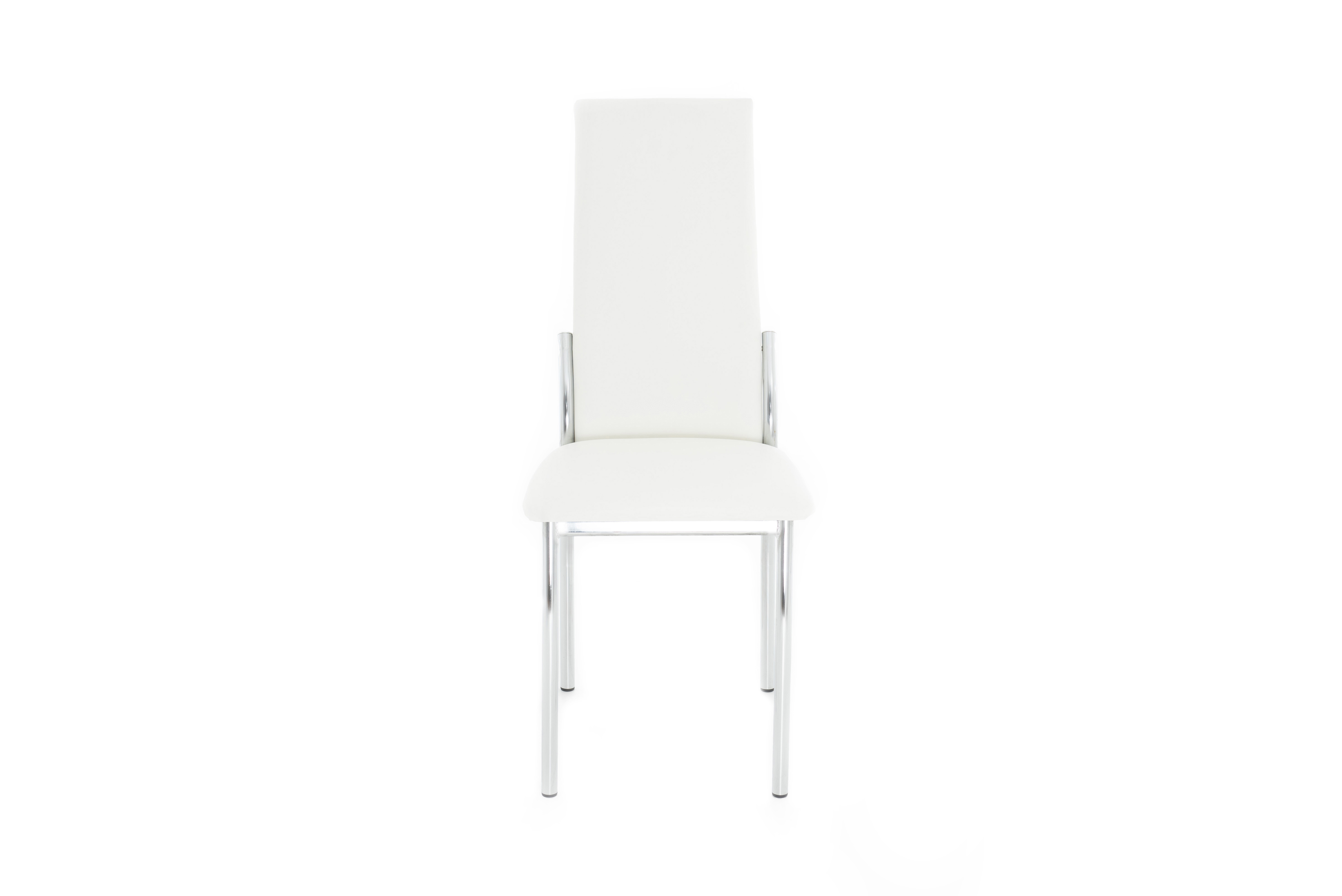 Стул на металлокаркасе Асти. Каркас - хромированный. Мягкая спинка и сиденье из пенополиуретана обиты экокожей кремового цвета. Допустимая нагрузка на стул - 70 кг. Габаритные размеры (см): Ширина: 43; Глубина: 37; Высота: 108; Высота сиденья: 48