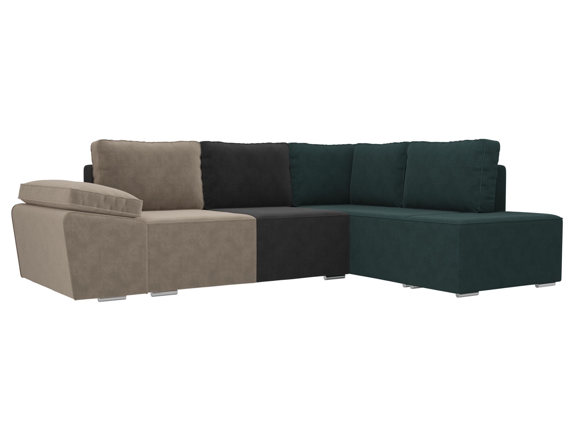 Отзывы о Столплит Угловой диван Хьюго правый угол, велюр бежевый/серый/бирюза
