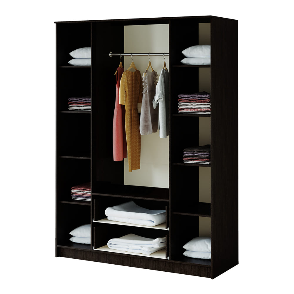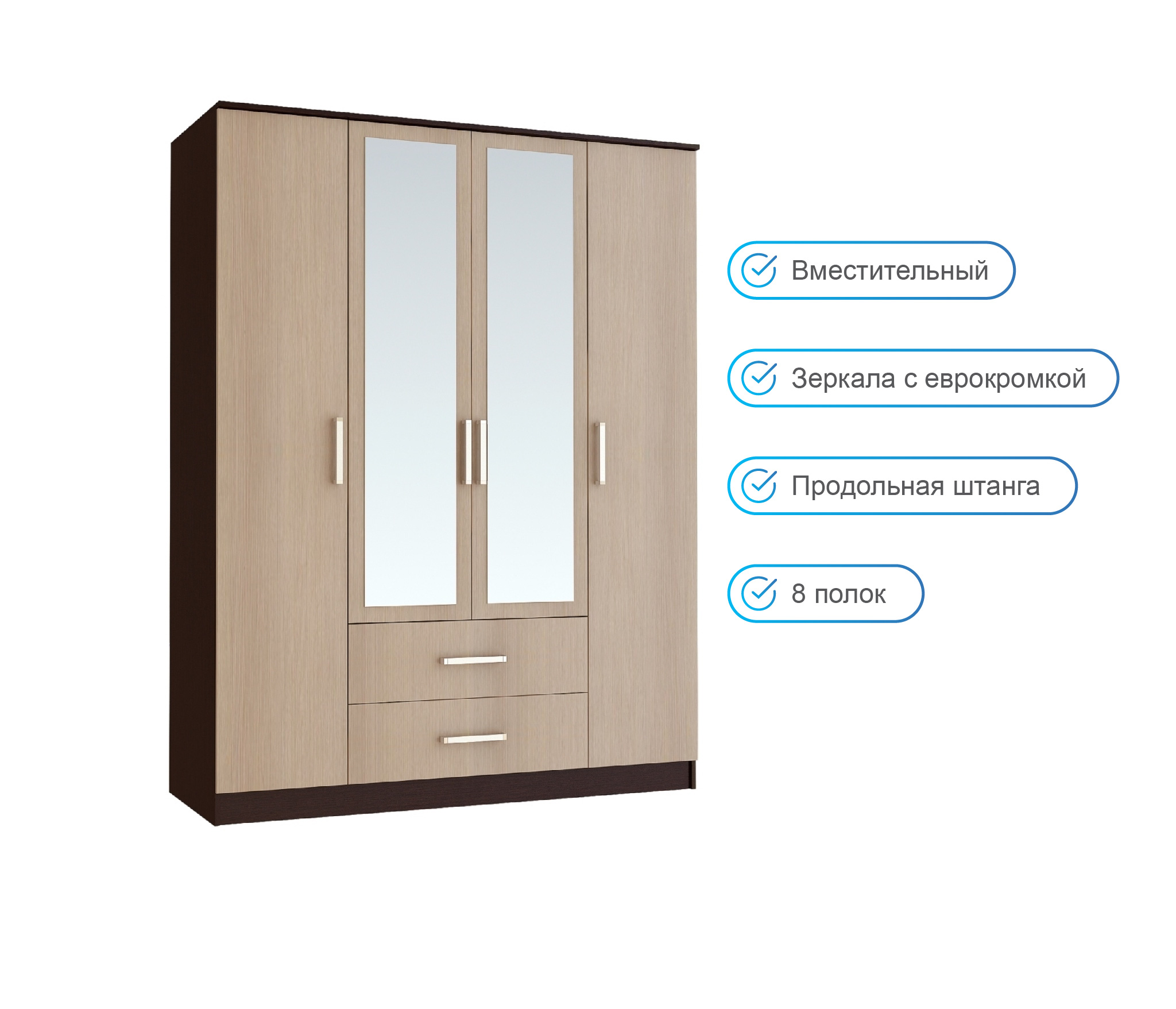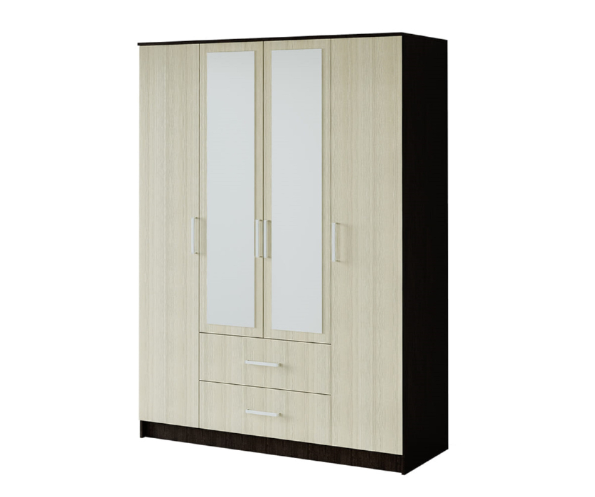 Вместительный четырёхстворчатый шкаф Фиеста справится с большим гардеробом и другими вещами.