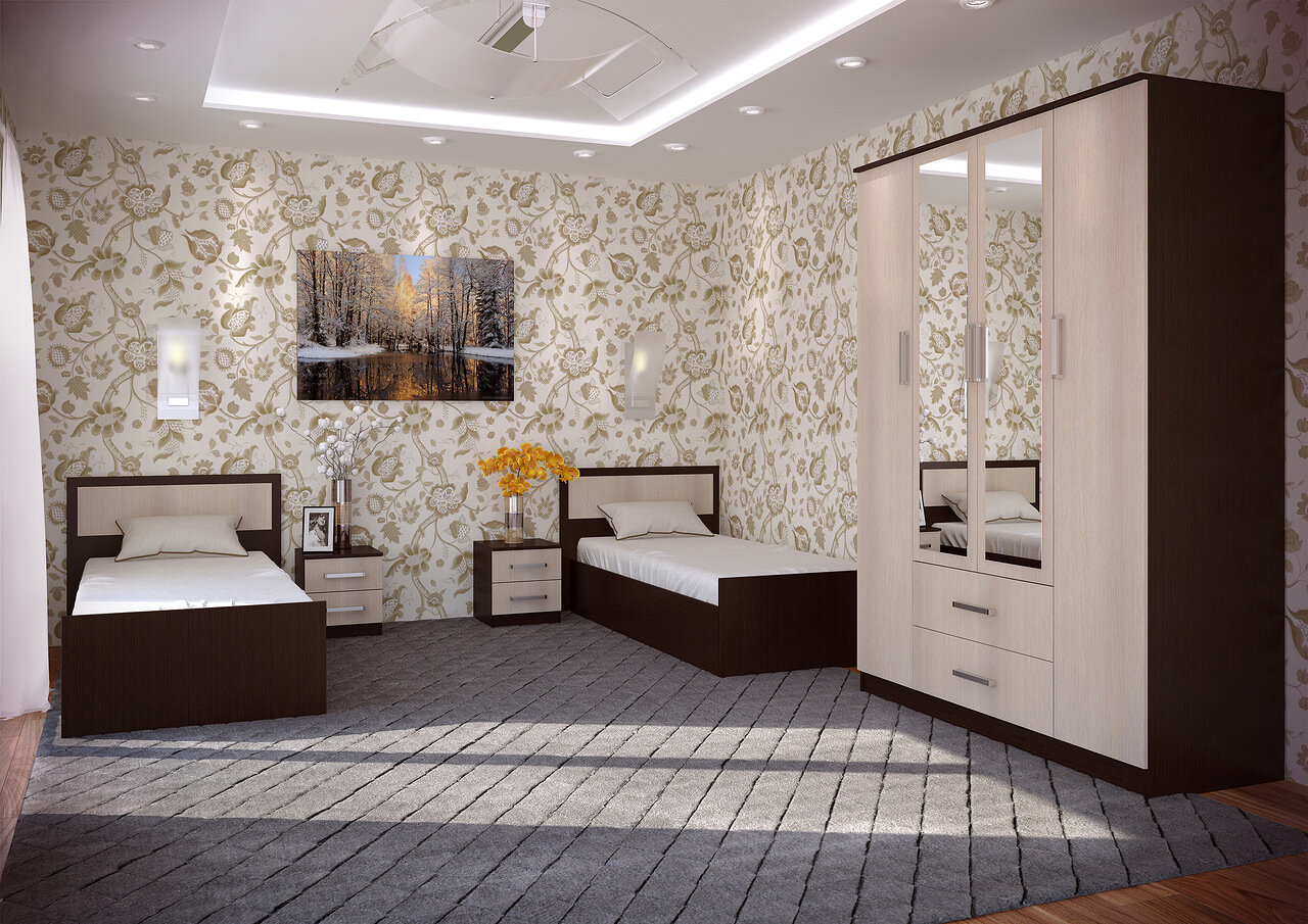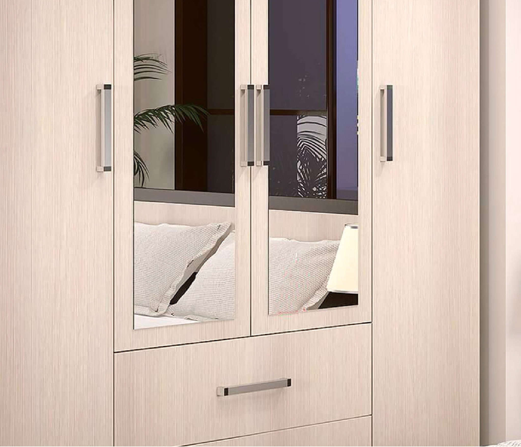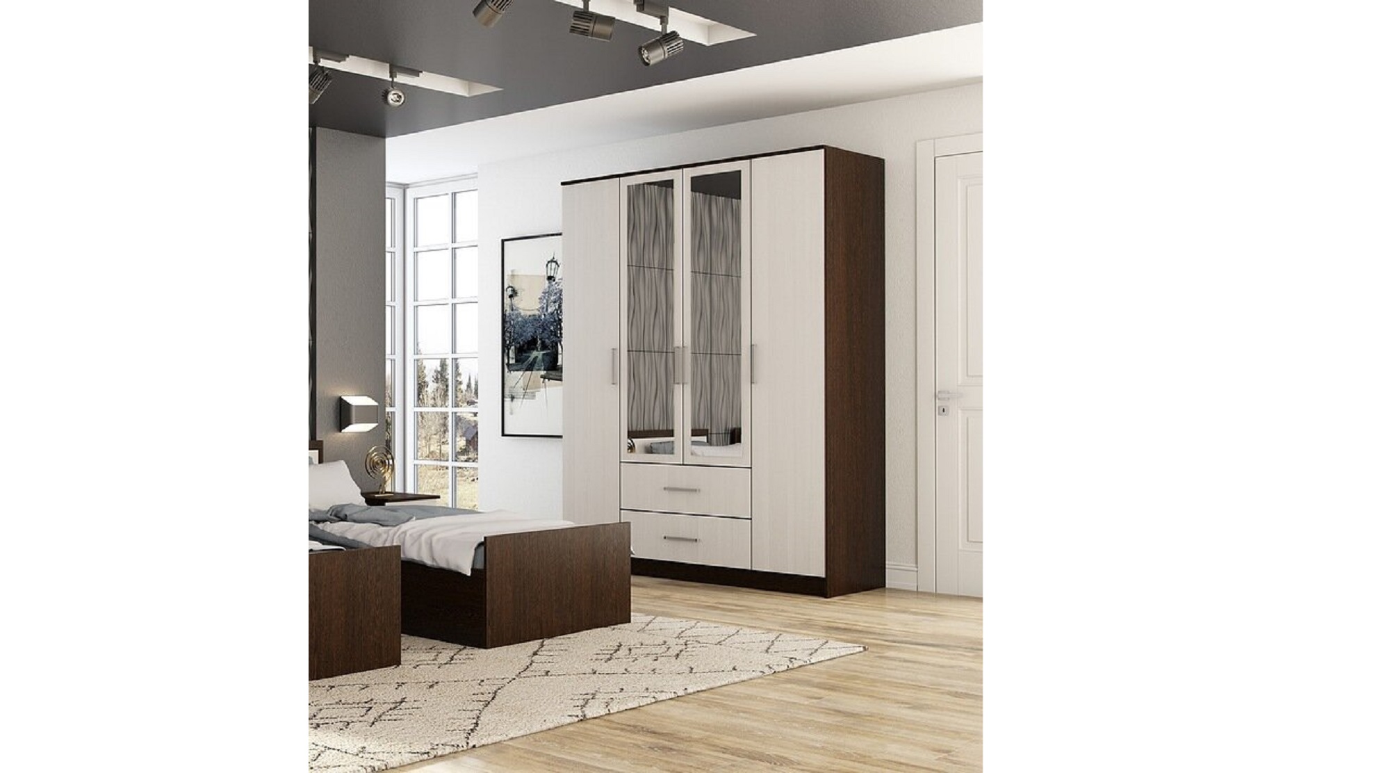 Вместительный четырёхстворчатый шкаф Фиеста справится с большим гардеробом и другими вещами.