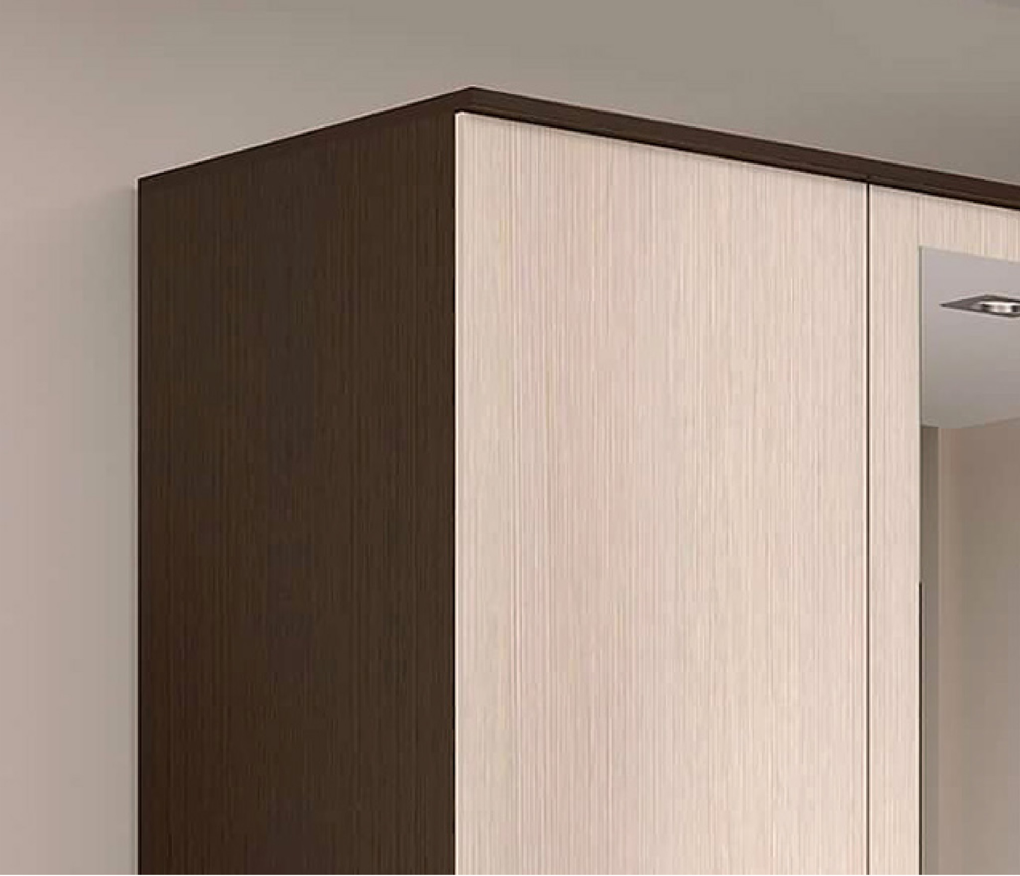 Корпус сделан в темном цвете венге, а фасады – в светлом лоредо.