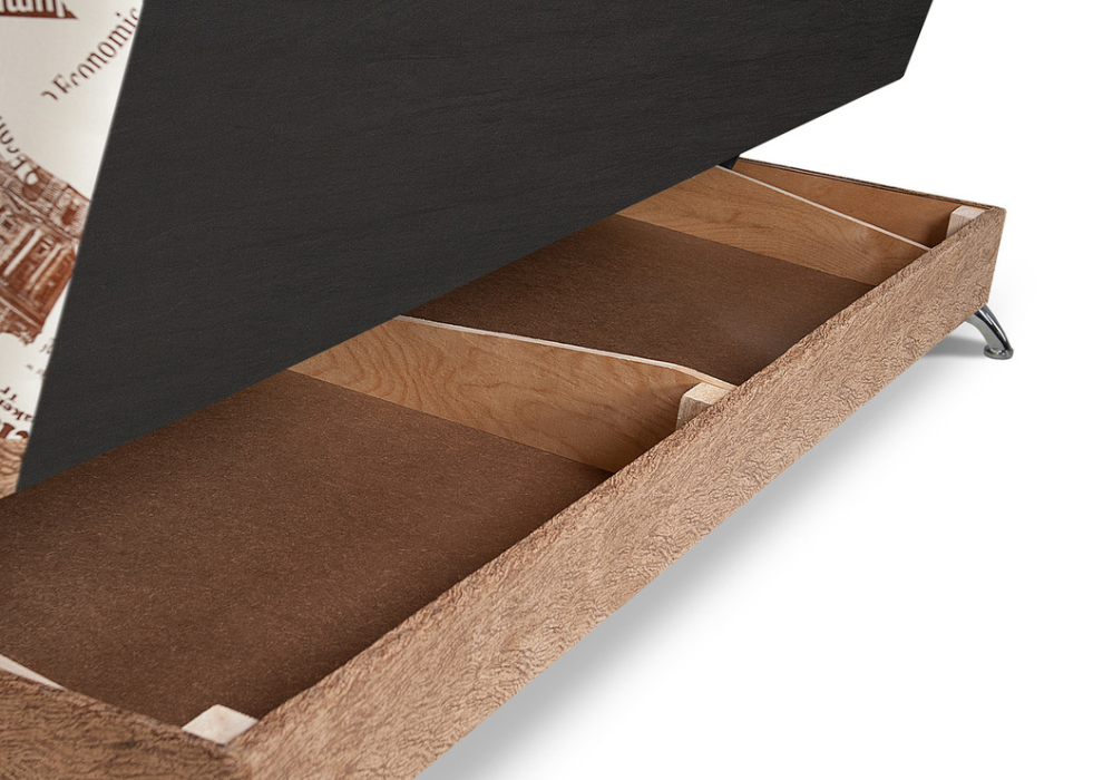 Кроме того, диван "Лодочка" оснащен бельевым ящиком, разделенным на две равные секции, в которые можно сложить постельное белье, подушки и другие мелкие предметы. Это упрощает процесс хранения и организации в комнате.