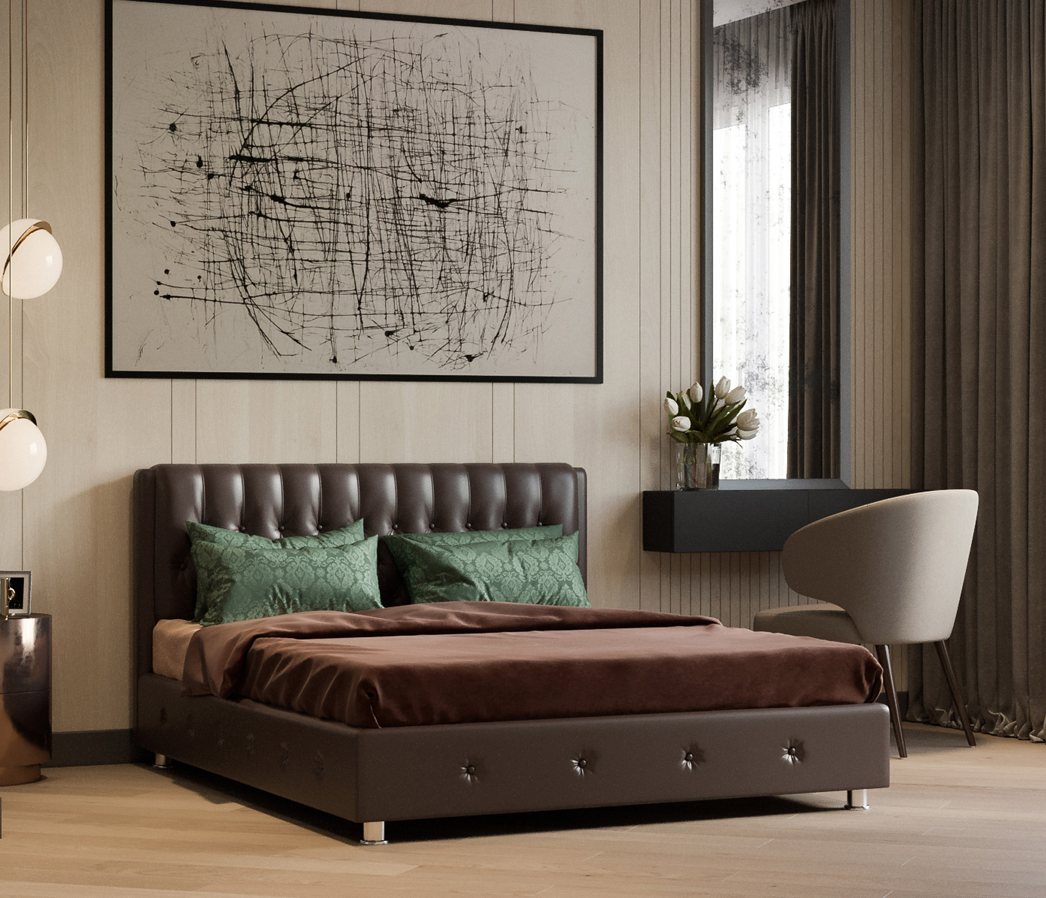 Стильное мягкое изголовье и яркая стяжка делают кровать «Граф» привлекательной деталью интерьера, добавляя в него уникальный характер.